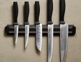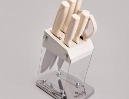 ● Состав набора: Нож поварской 20 см, Нож для хлеба 20 см, Нож для нарезки 20 см, Нож универсальный 12,5 см, Нож для чистки овощей и фруктов, 9 см, Удобная пластиковая подставка для безопасного хранения ножей.