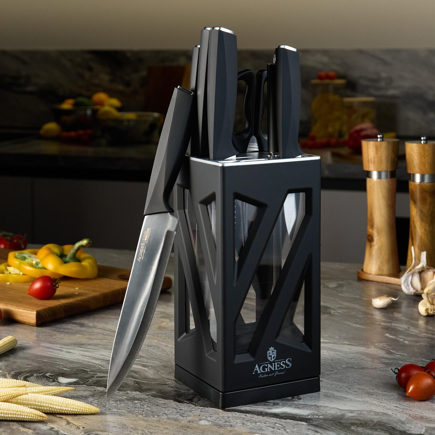 Отзывы о Набор кухонных ножей "AGNESS" 911 на вращающейся подставке