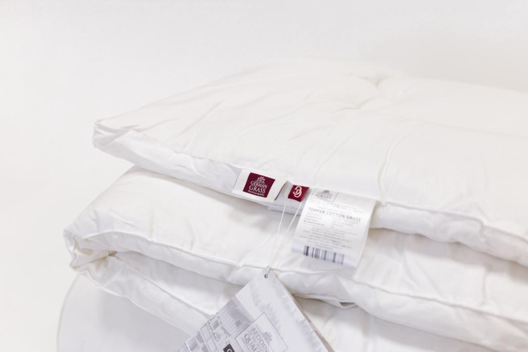 Наматрасник - топпер серии "TOPPER COTTON GRASS" высотой 4 см выполнен в сатиновом чехле (100% хлопок). В качестве верхнего слоя наполнителя используется хлопковое волокно, термоскрепленное высокосиликонизированным би-компонентом. Внутренний слой - полое полиэфирное волокно HOLLCON (100% полиэстер). Крепление топпера к матрасу осуществляется с помощью расположенных по углам резинок. В качестве ухода не рекомендуется стирка - только сухая чистка.