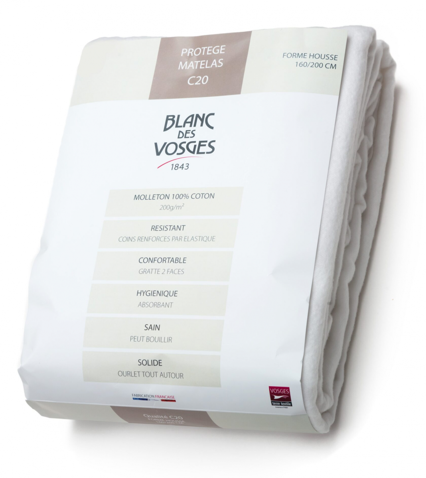 Наматрасник с бортом "Blanc des Vosges" PROTECTION хлопок фланель, 200х200