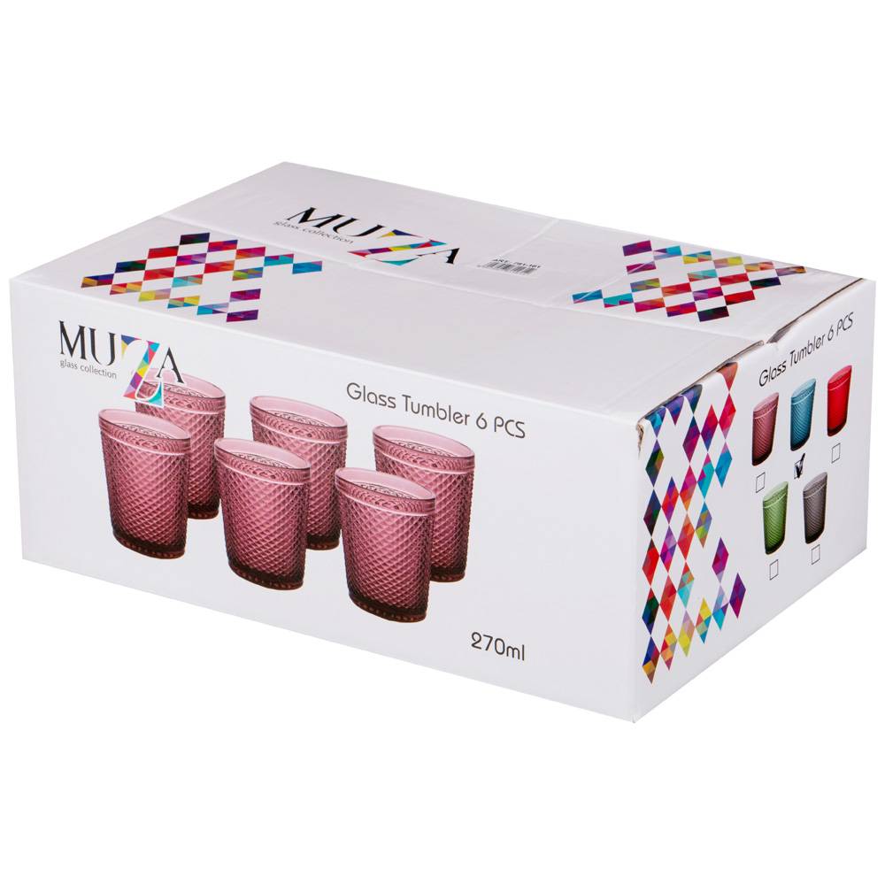 Набор стаканов для воды 6 штук "MUZA COLOR" ГРАНАТ 781-162, 280 мл