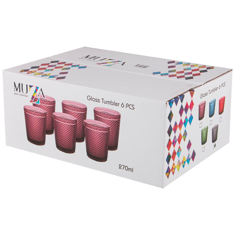 Набор стаканов для воды 6 штук "MUZA COLOR" ГРАНАТ 781-164, 280 мл