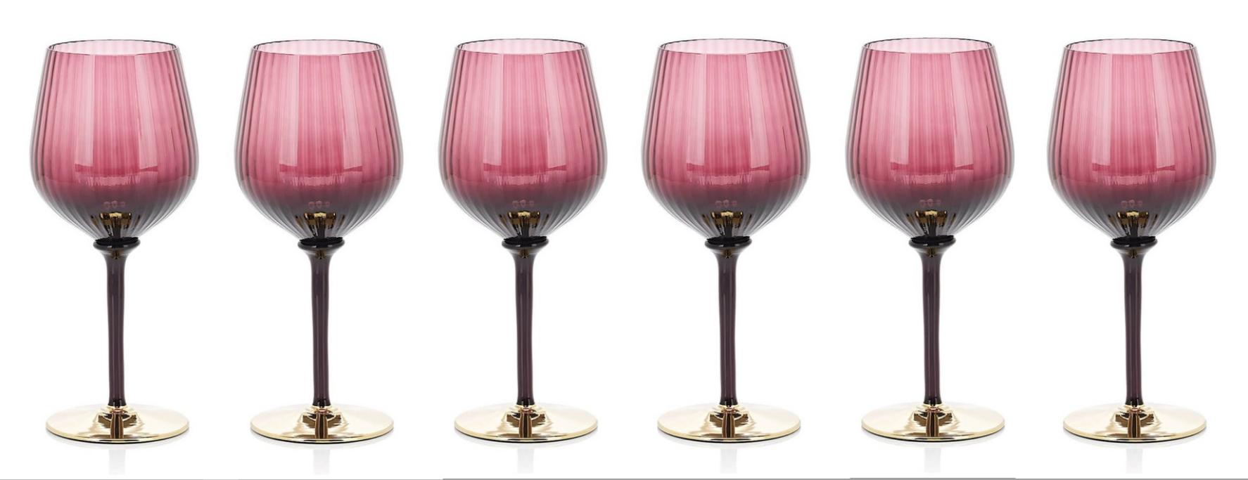 Набор бокалов для вина 6 штук "COTE D'OR" муранское стекло, высота 23 см