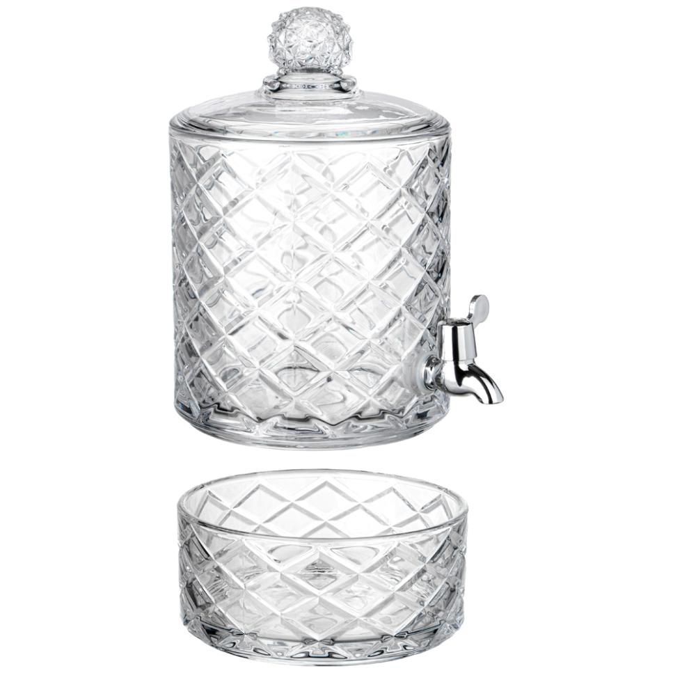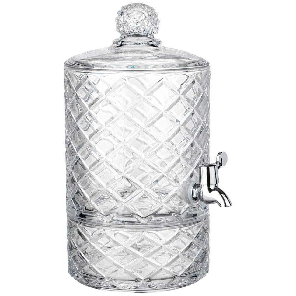 Диспенсер для напитков (лимонадница) представляет собой стеклянную ёмкость большого объёма с расположенным в нижней части краником-дозатором, с помощью которого удобно наполнять фужеры, бокалы или стаканы. Идеально подходит для слабоалкогольных и прохладительных напитком.