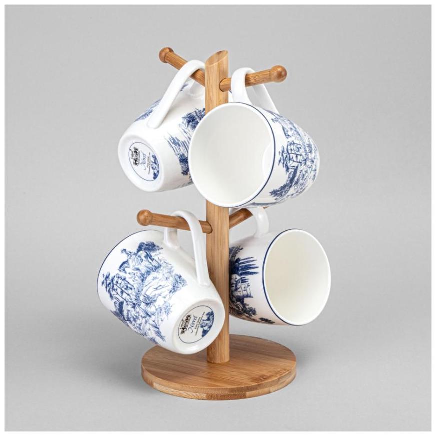 Набор кружек на деревянной подставке 4 шт. "NOVEL", 380 мл