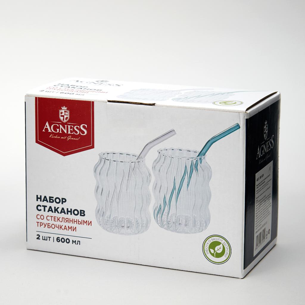 Набор стаканов 2 штуки "Agness" 887-291, 600 мл со стеклянными трубочками