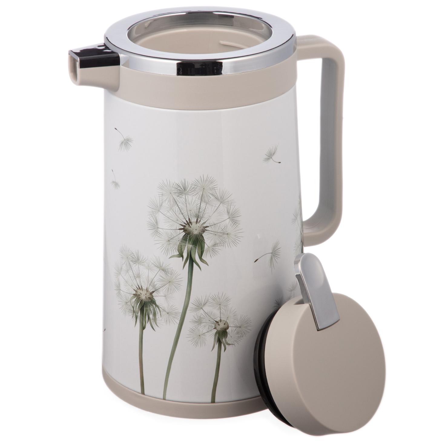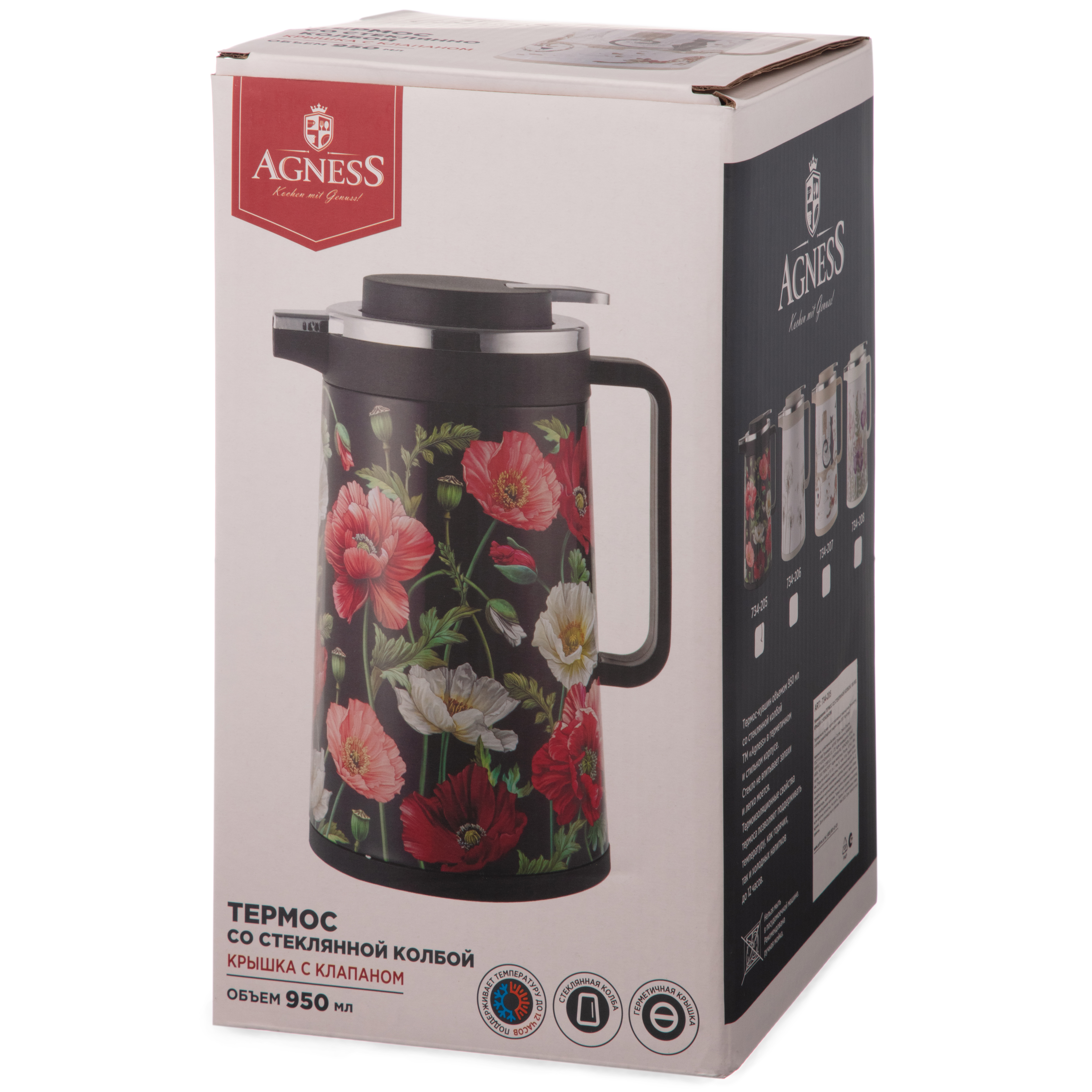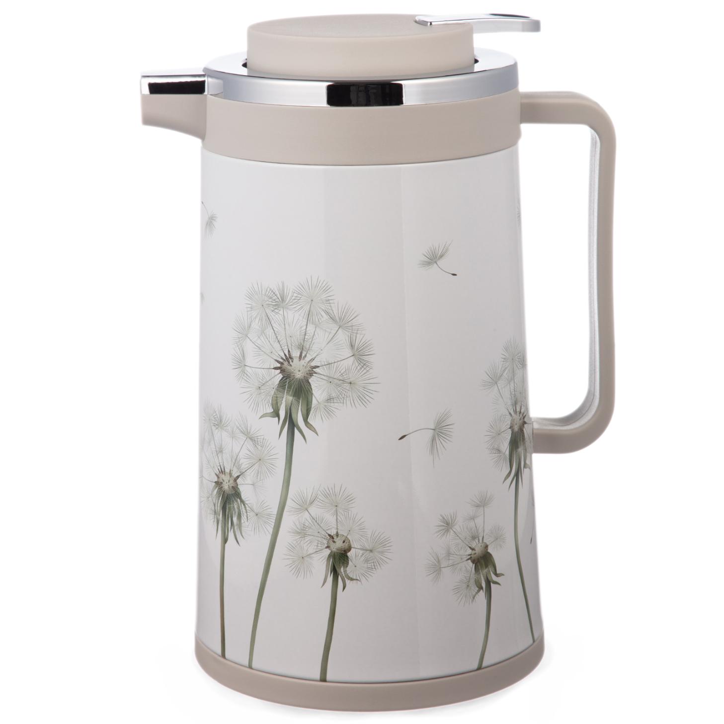 Термос со стеклянной крышкой (с клапаном) AGNESS "DANDELION", 950 мл