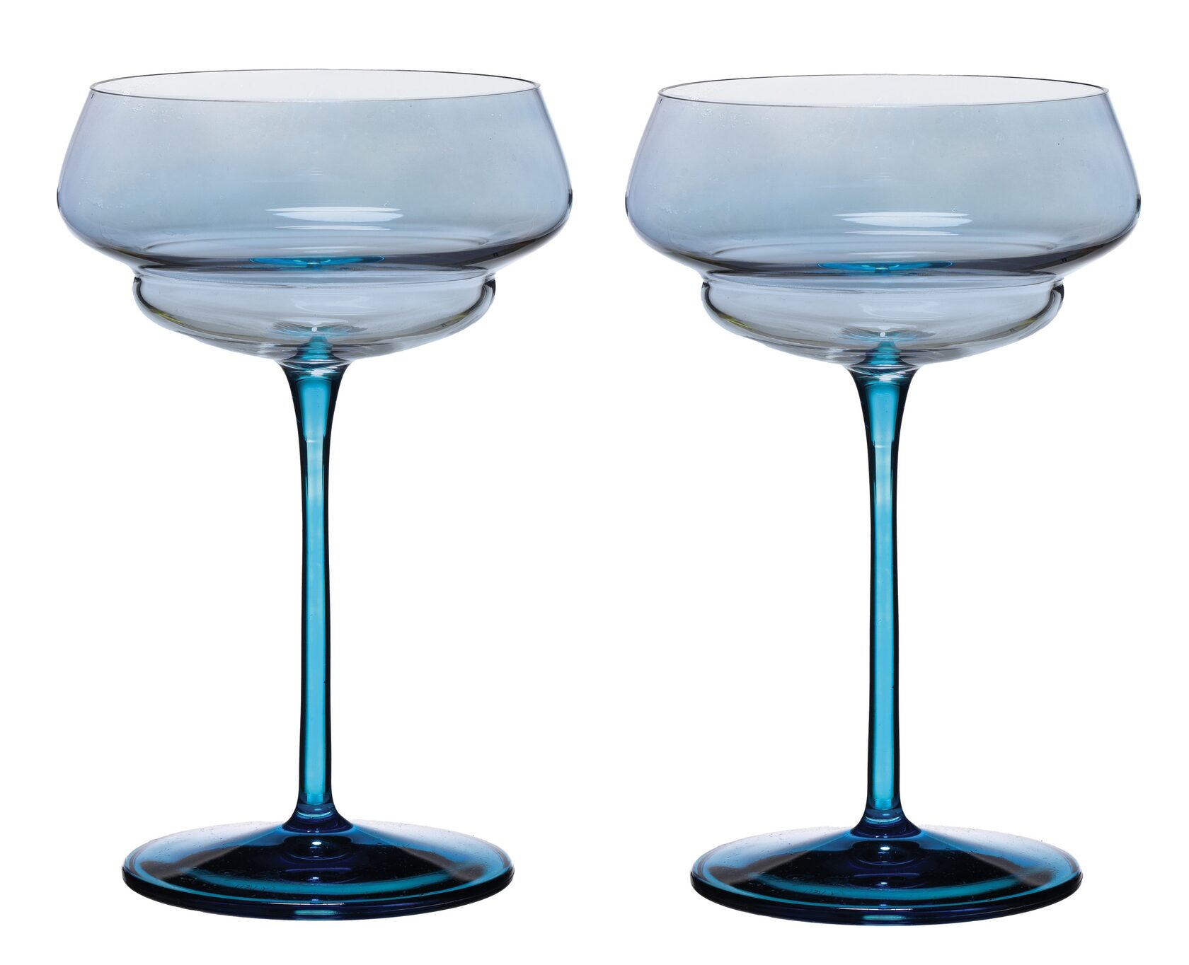 Набор креманок для шампанского 2 штуки "Suite-03" (голубой) стекло, высота 16 см