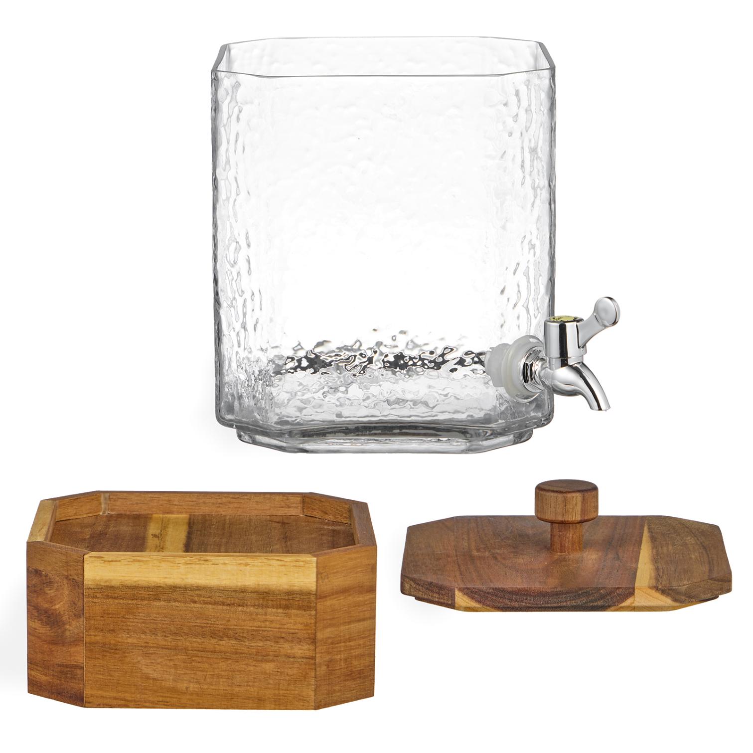 Диспенсер для напитков (лимонадница) представляет собой стеклянную ёмкость большого объёма с расположенным в нижней части краником-дозатором, с помощью которого удобно наполнять фужеры, бокалы или стаканы. Идеально подходит для слабоалкогольных и прохладительных напитком.