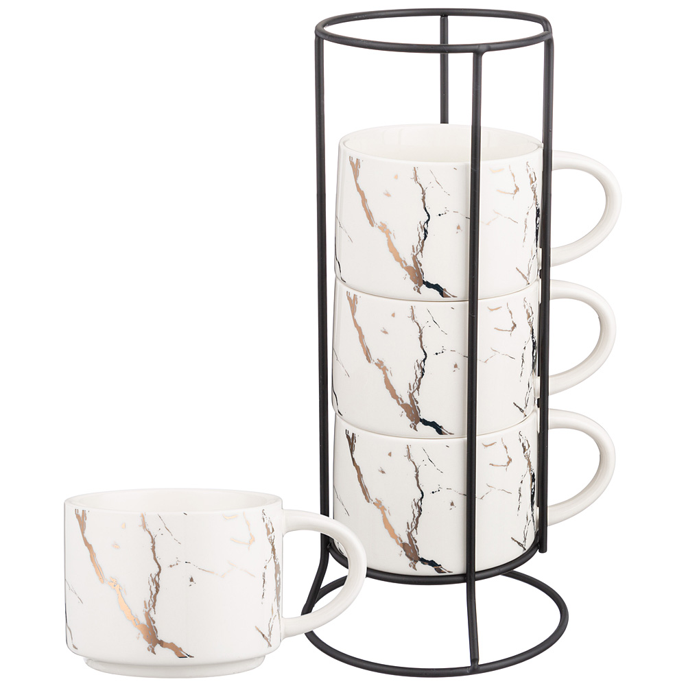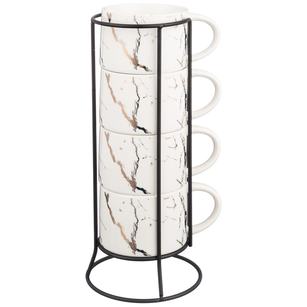 Набор кружек на металлической подставке 4 штуки "FANTASY", 300 мл (белый)