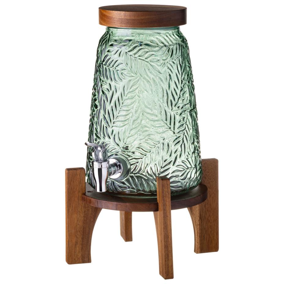 Диспенсер для напитков на деревянной подставке "FLORA GREEN", 3,5 л