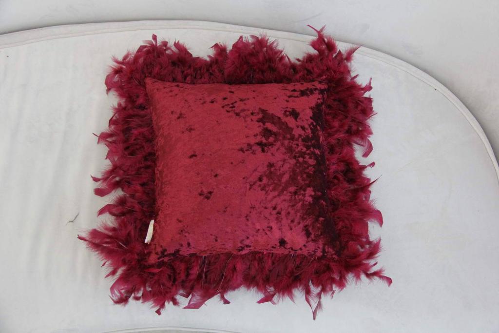 При пошиве декоративных наволочек серии Бурлеск ТМ "«Sofi de Marco»" используется бархат (100% вискоза). Бархат - ворсовый материал, отличающийся, с одной стороны, прочностью и долговечностью, мягкостью и практичностью, с другой - привлекательным внешним видом. Наволочки декорированы пайетками. В качестве ухода рекомендована стирка при температуре 30 °C.