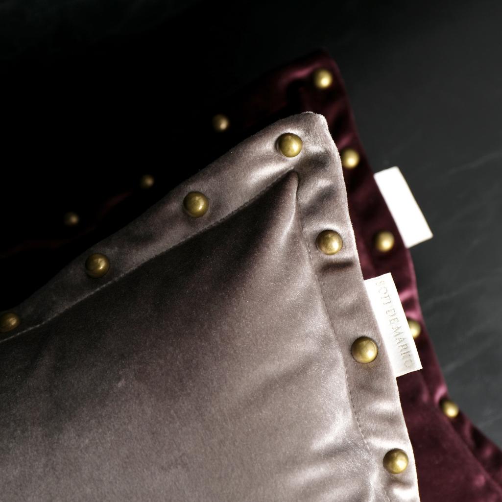 При пошиве декоративных наволочек серии Людвиг ТМ "«Sofi de Marco»" используется велюр (100% вискоза). Велюр (в переводе с французского – бархат) - ворсовый материал, отличающийся, с одной стороны, прочностью и долговечностью, мягкостью и практичностью, с другой - привлекательным внешним видом. Наволочки декорированы клепками по канту, напоминающие пуговицы сферическое формы. В качестве ухода рекомендована стирка при температуре 30 °C.
