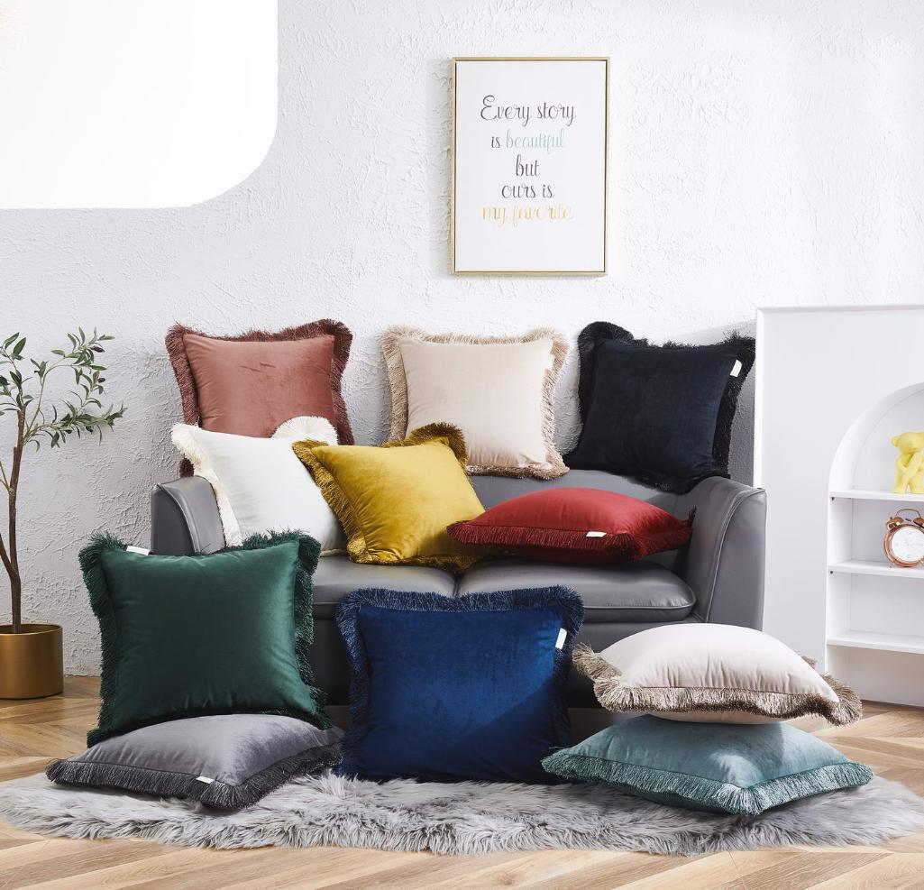 При пошиве декоративных наволочек серии Фаина ТМ "«Sofi de Marco»" используется велюр (100% вискоза). Велюр (в переводе с французского – бархат) - ворсовый материал, отличающийся, с одной стороны, прочностью и долговечностью, мягкостью и практичностью, с другой - привлекательным внешним видом. Наволочка по периметру декорирована бахромой (кистями). В качестве ухода рекомендована стирка при температуре 30 °C.