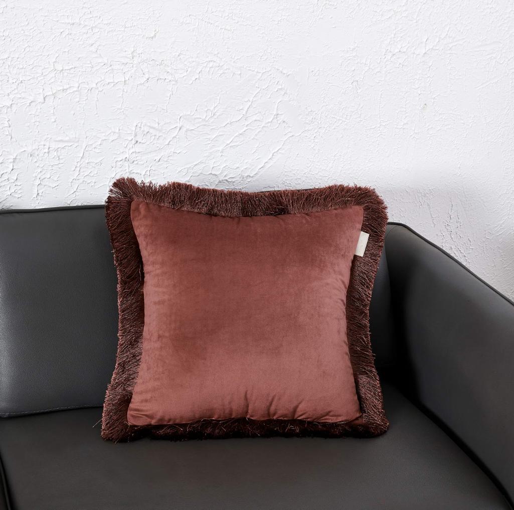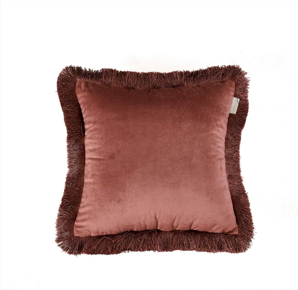 При пошиве декоративных наволочек серии Фаина ТМ "«Sofi de Marco»" используется велюр (100% вискоза). Велюр (в переводе с французского – бархат) - ворсовый материал, отличающийся, с одной стороны, прочностью и долговечностью, мягкостью и практичностью, с другой - привлекательным внешним видом. Наволочка по периметру декорирована бахромой (кистями). В качестве ухода рекомендована стирка при температуре 30 °C.