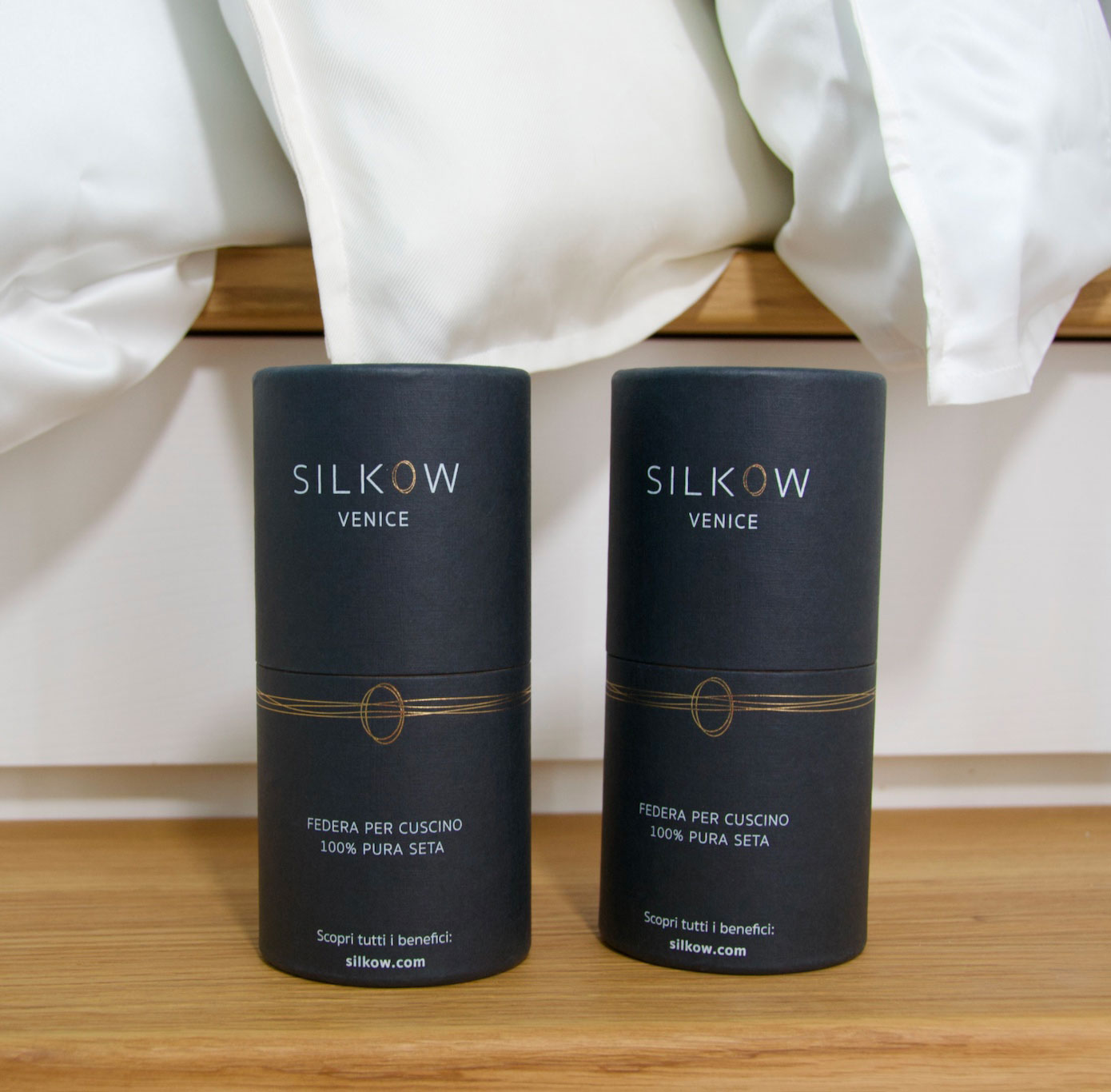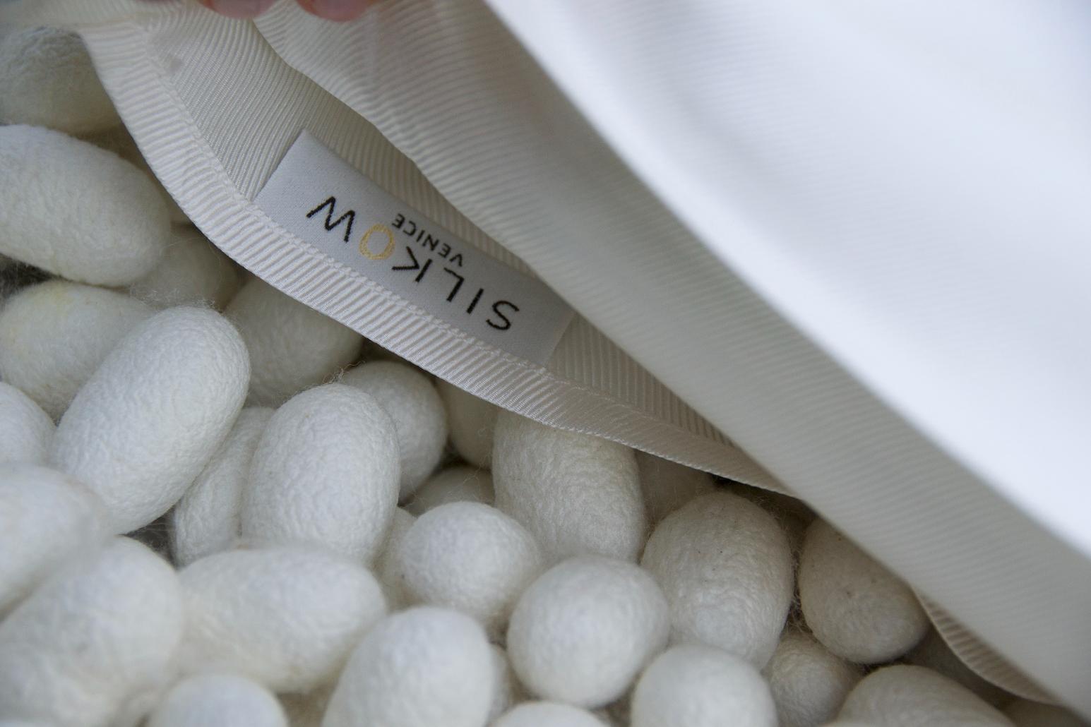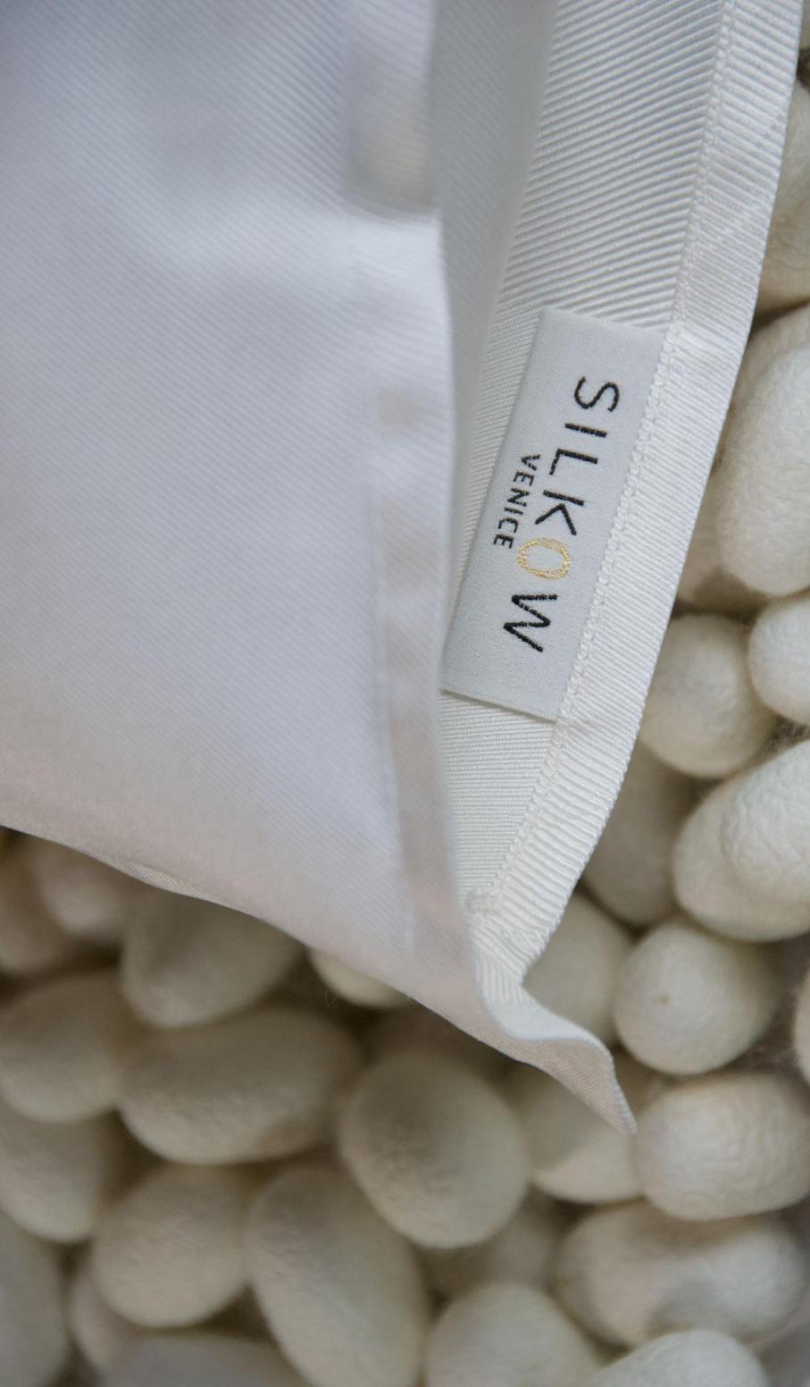 Наволочки "SILKOW" отшиваются в Венеции из натурального шёлка класса Mulberry. Натуральный шёлк обладает хорошей гигроскопичностью и терморегулирующими свойствами, в нём содержится белок — серицин, благотворно влияющий на кожу и препятствующий появлению клещей и бактерий.