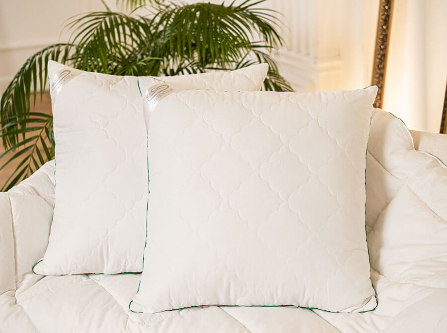 Бамбуковое волокно, используемое в качестве наполнителя для одеял и подушек, переносит на эти изделия все положительные свойства бамбука. Выращенный в естественных природных условиях бамбук обладает прекрасными антибактериальными и гипоаллергенными свойствами. Подушка серии «Бамбуковая жемчужина» торговой марки SN-Textile (СН-Текстиль) с наполнителем из бамбукового волокна с внутренним чехлом с волокнами из искусственного лебяжьего пуха и чехлом из 100% хлопка сатина хорошо впитывает и испаряет влагу, пропускает воздух и благотворно влияет на состояние кожи лица.