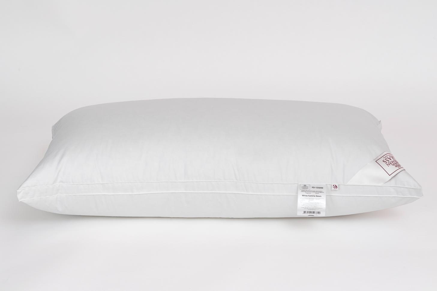 Трёхкамерная подушка серии «White Familie Down» выполнена в чехле из пуходержащего сатина (100% Хлопок). В качестве наполнителя внешней камеры используется серый пух высшей категории гусей тулузской породы. Наполнитель внутренней камеры: 50% гусиный пух, 50% гусиное мелкое перо. Бортик по периметру чехла не только позволяет подушке сохранять первоначальную форму, но и предотвращает возможную миграцию пуха. Уход: стирка при температуре не более 30 °С
