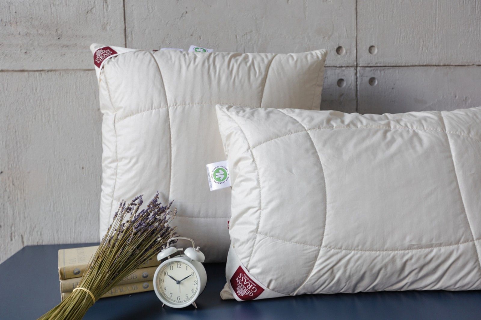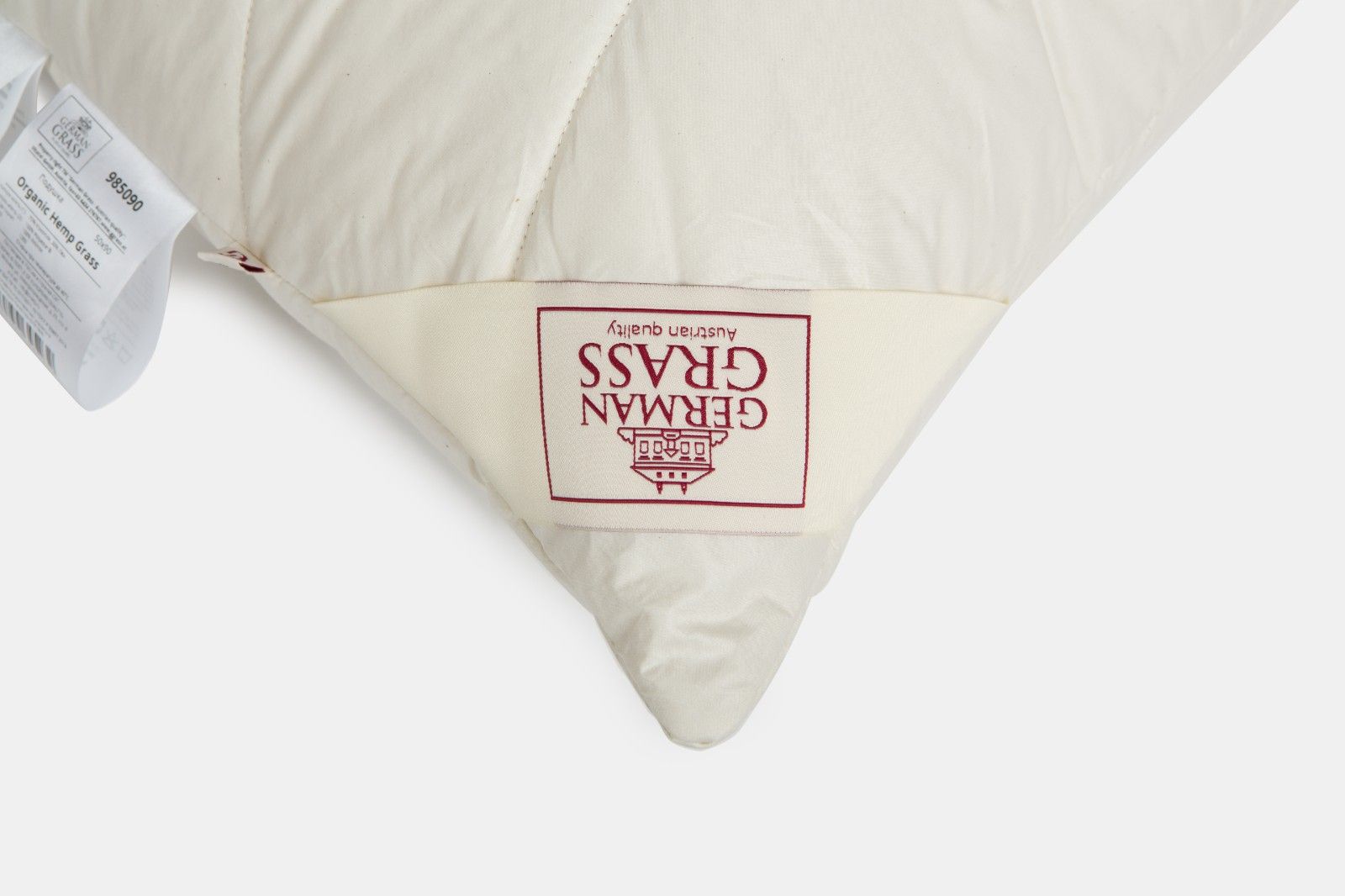 Подушка серии "ORGANIC HEMP GRASS" выполнена в стёганом чехле с наполнителем на основе волокон культурной (технической) конопли, обладающей ярко выраженными антибактериальными свойствами. Этот вид конопли не содержит наркотических веществ. Пористая структура волокон конопли обеспечивает одеялу отличную воздухопроницаемость и гигроскопичность. В качестве второго элемента наполнителя используется льняное волокно. В качестве наполнителя ядра используется объемное 4-L волокно во внутренней наволочке на молнии с возможностью регулирования степени комфорта.
