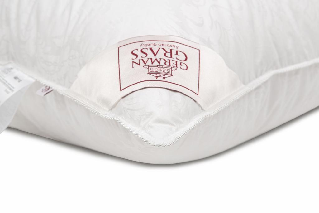 Подушка из коллекции "PRINCESS DOWN GRASS" торговой марки «German Grass» выполнена в чехле из пуходержащего жаккардового сатина (100% египетский хлопок). В качестве наполнителя используется белый гусиный пух отборного качества с показателем упругости Fill Power не менее 850 единиц.