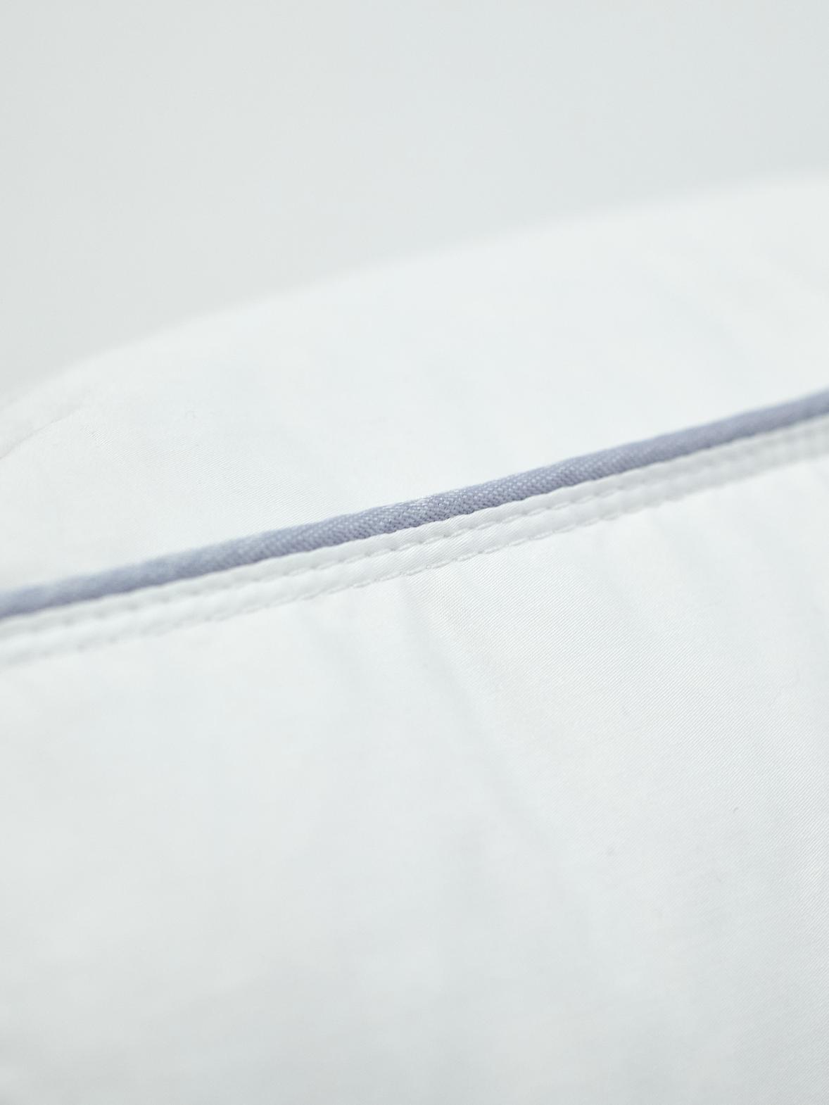 Для производства подушки Афина ТМ "Лёгкие Сны" в качестве наполнителя используется пух серый гусиный пух категории "Экстра"(90% пух, 10% перо), что обеспечивает изделию идеальный уровень комфортности, высокие показатели воздухопроницаемости и способности к терморегуляции. Ткань чехла - атлас (66% Хлопок, 34% Полиэстер).