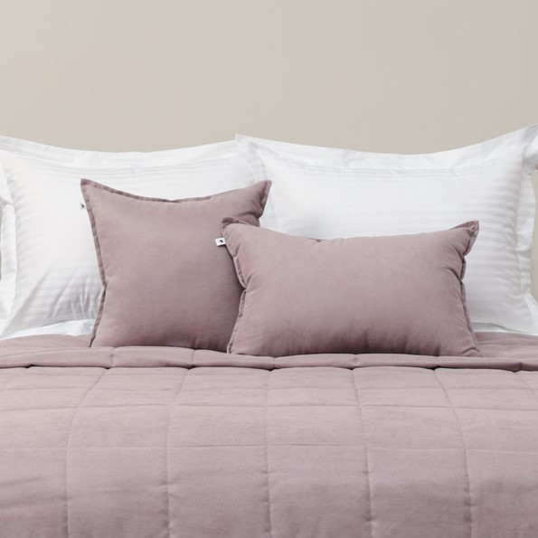 При пошиве подушек для стёганого покрывала "Доминико" используется бархатистый канвас (100% вискоза) - плотная и износостойкая ткань с лёгким противоскользящим эффектом.
