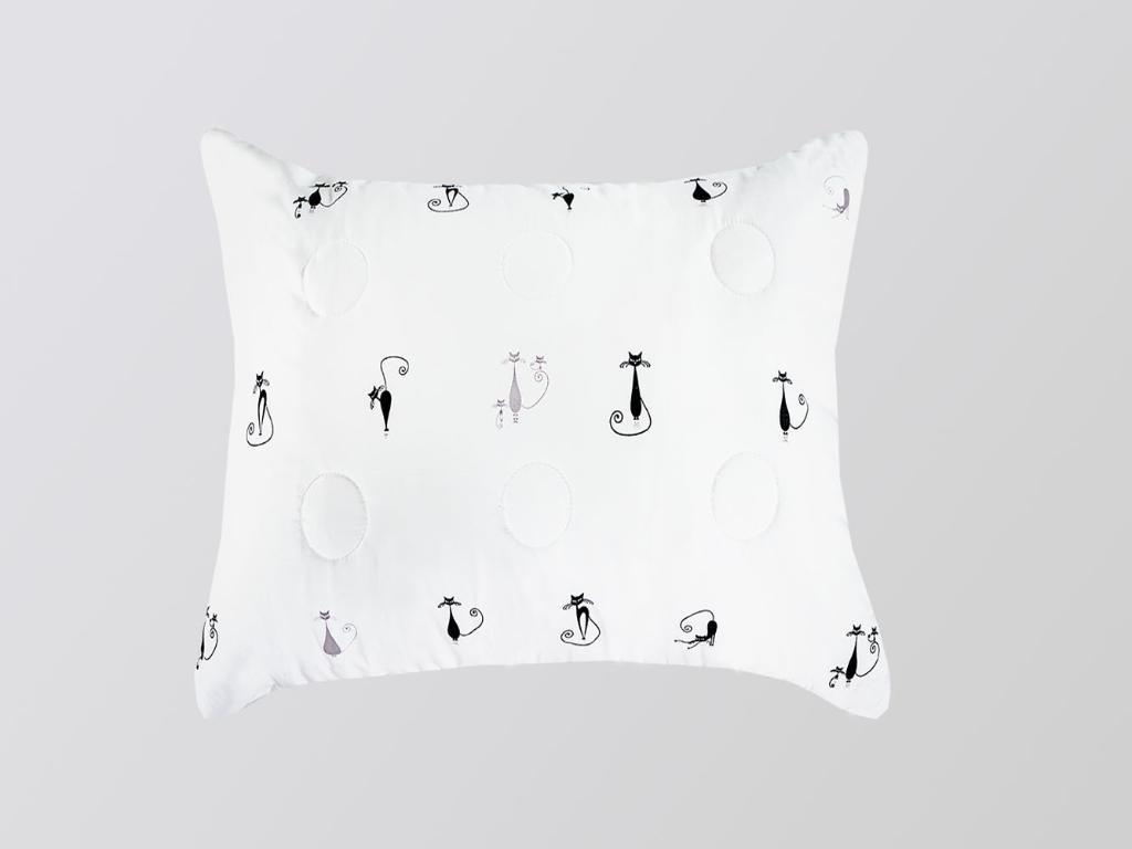 Подушка серии "Flossy" выполнена в стёганом чехле из бархатистого Brushed-твилла с наполнителем из смеси волокон натурального шелка и микроволокна (30% сорт Тусса, 70% микроволокно).