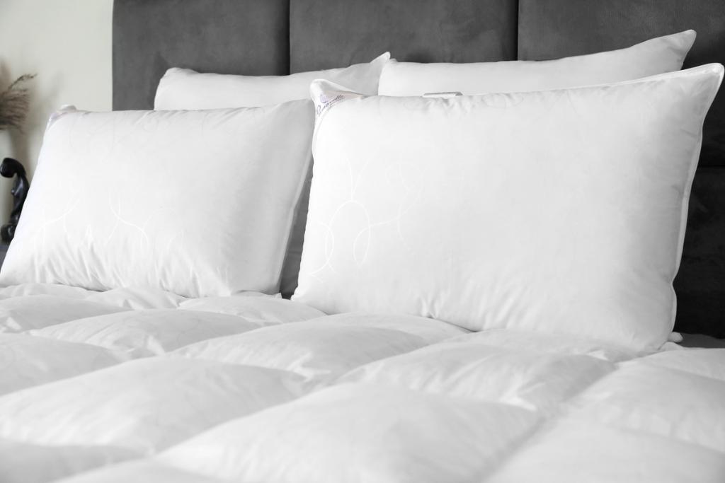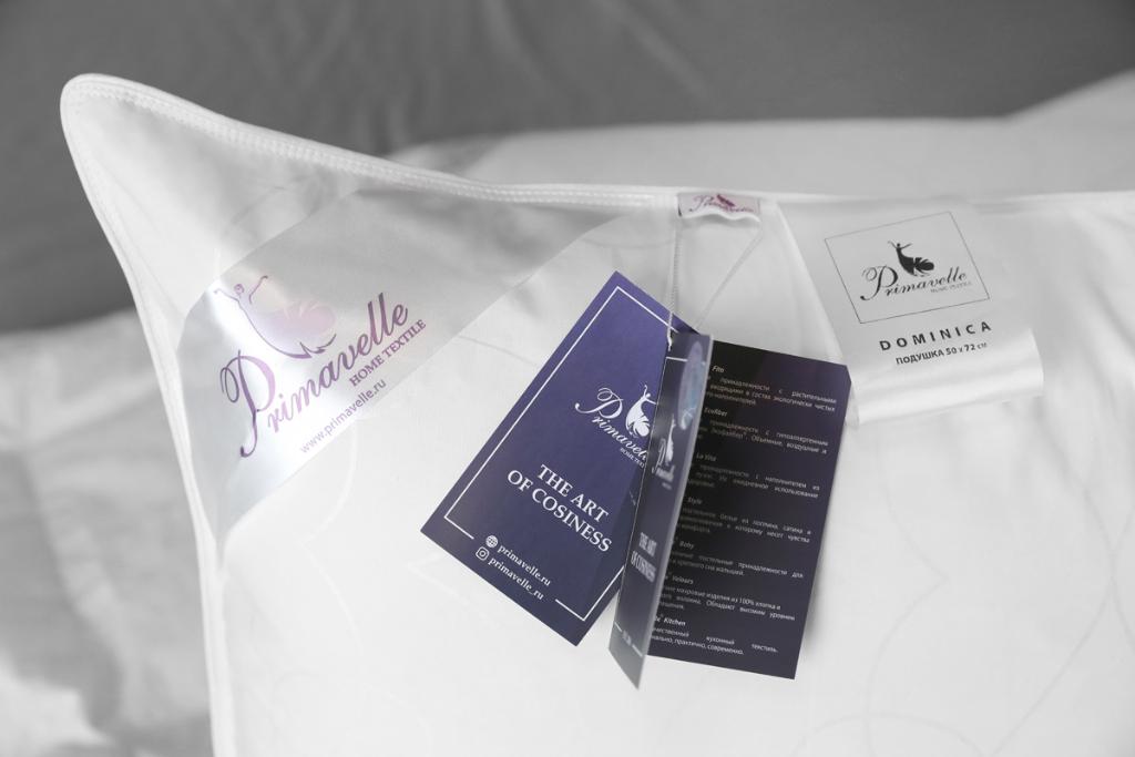Для производства подушки серии "Dominica" ТМ "Primavelle" в качестве наполнителя используется белый гусиный пух сибирского гуся 1-й категории (50% пух, 50% перо) с показателем упругости Fill Power не менее 500 единиц, что обеспечивает изделию оптимальный уровень упругости и комфортности. Ткань чехла - 100% хлопок тик.