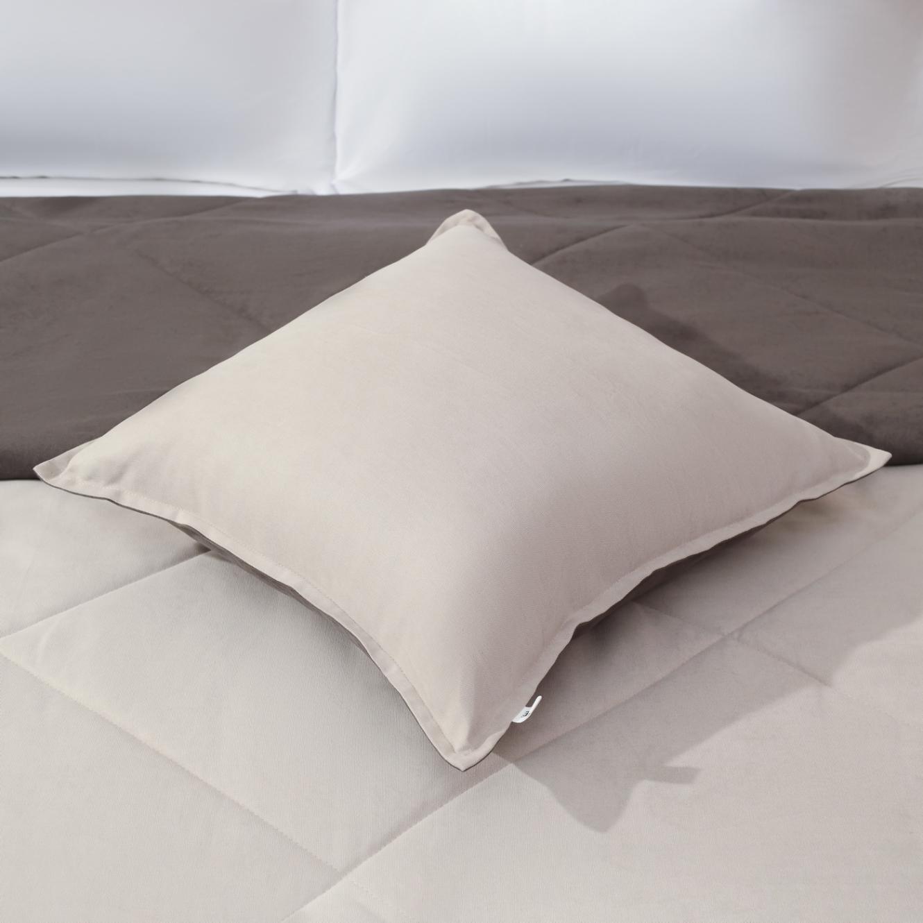 При пошиве подушек для стёганого покрывала "Нолан" используется бархатистый канвас (100% вискоза) - плотная и износостойкая ткань с лёгким противоскользящим эффектом.
