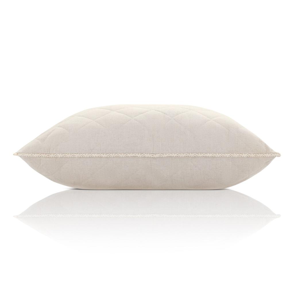 Подушка серии "ЛЁН" с природным наполнителем из льняного волокна в чехле из одноимённого материала станет незаменимым атрибутом в Вашей спальне в условиях жарких летних ночей. В качестве внутреннего наполнителя используется микроволокно. Такая подушка обладает отличной воздухопроницаемостью, обеспечивает высокий влагообмен, быстро поглощая и испаряя влагу, оставаясь при этом сухим. Содержание в химическом составе льна кремния и селена объясняет высокие антибактериальные свойства льняного волокна. Подушка с льняным наполнителем обеспечит Вам комфортный сон, погрузив в атмосферу свежести и прохлады.