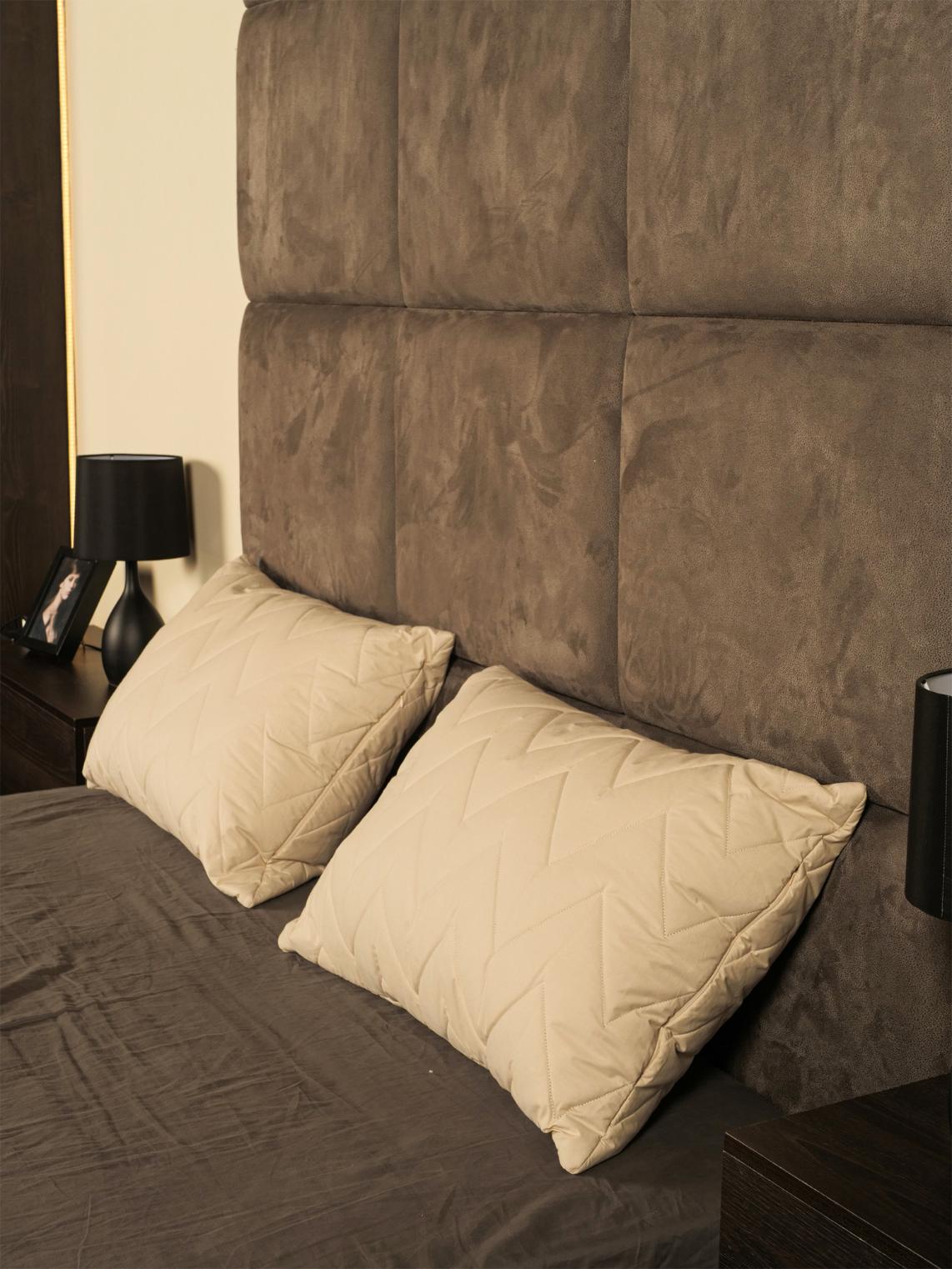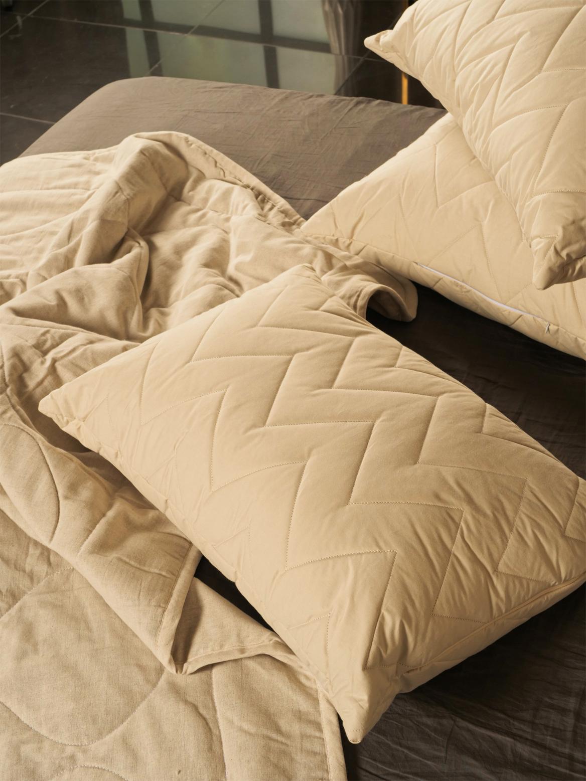 Подушка серии «Бамбук и Хлопок» торговой марки "Лежебока" выполнено в стёганом чехле из перкали (100% хлопок). В качестве наполнителя чехла используется вискозное льняное и хлопковое волокно, Лён ценится за свои антибактериальные свойства, воздухопроницаемость и высокую способность к терморегуляции. Наполнитель ядра подушки - микроволокно.