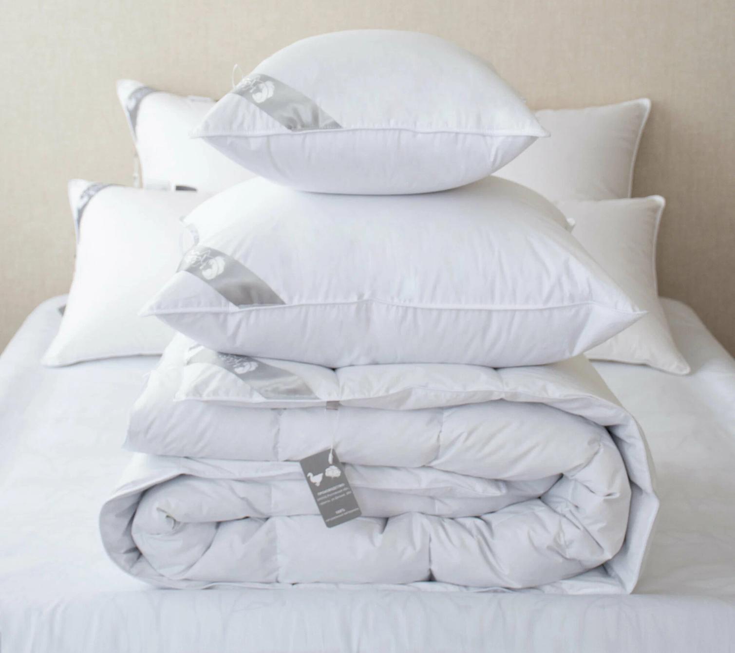 В качестве наполнителя одеял и подушек серии "Сюита" используется обогащённая пухо-перовая смесь (70% пуха, 30% мелкое перо водоплавающей птицы). Ткань чехла выполнена из импортного тика (100% хлопок).