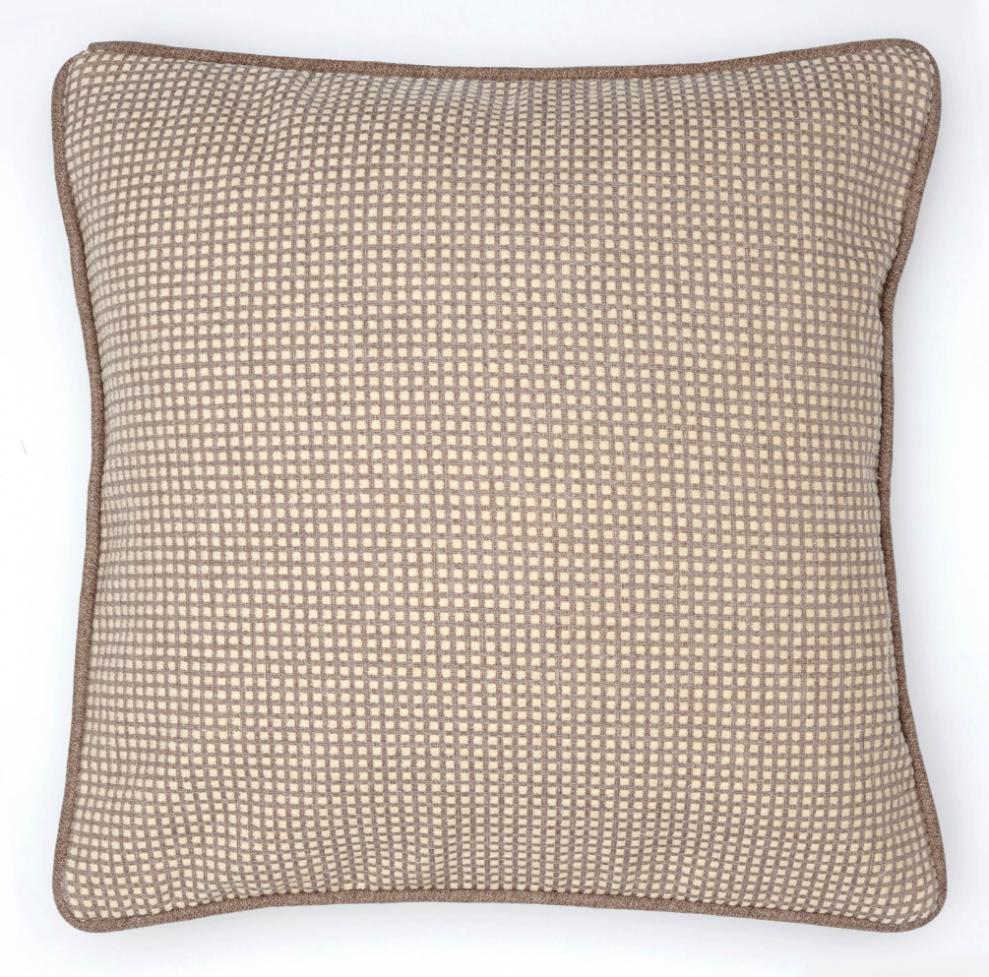 Подушка декоративная "CUBE" 45х45, кремово-бежевая клетка (кант коричневый)