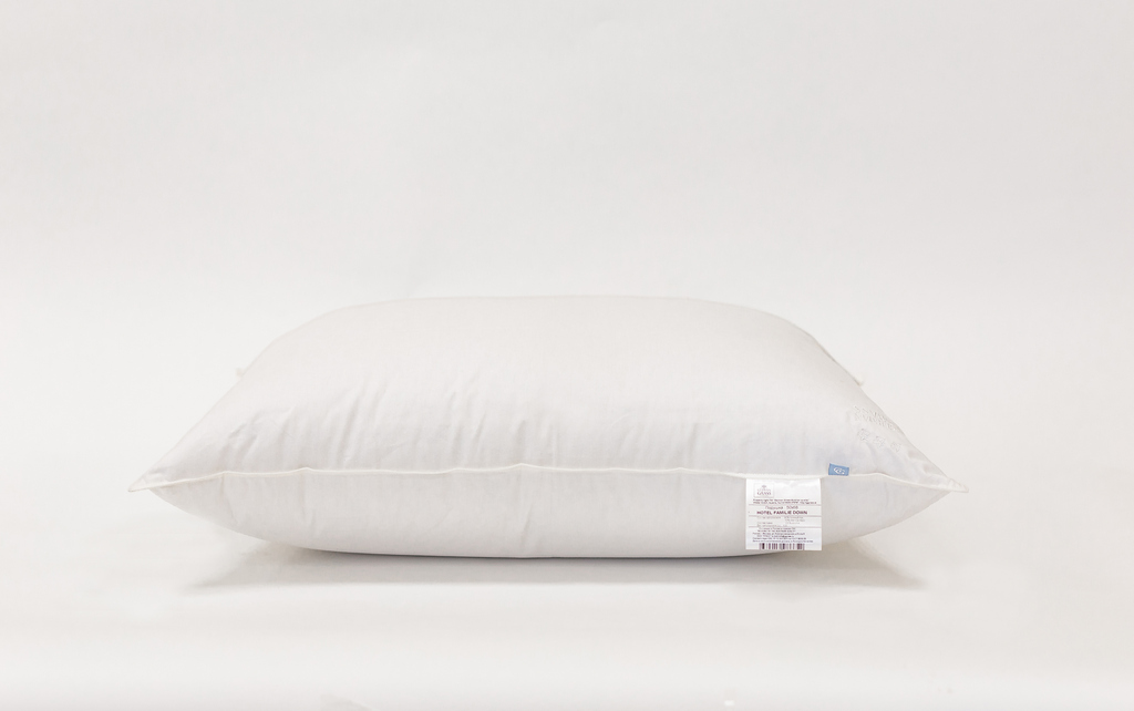 Подушки серии "STARS FAMILIE DOWN" выполнены в чехле из пуходержащего твила (100% Хлопок) с наполнителем на основе гусиного пуха с различным процентным соотношением мелкого пера. Подушки классифицированы по "звёздному" принципу - более высокое процентное содержание пуха соответствует большей "звёздности". Соответствующая вышивка на подушке указывает на её принадлежность к тому или иному классу.