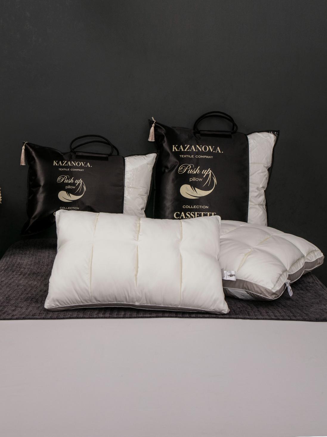 В качестве материала для ткани чехла подушки серии CASSETE торговой марки "Kazanov.A" используется 100% египетский хлопок. Подушка двусторонняя: