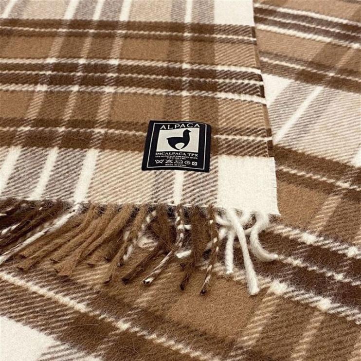 Плед INCALPACA (Перу) серии PP выполнен из смеси шерсти альпаки и мериноса. Шерсть альпаки обладает большой способностью сохранять тепло, что достигается за счёт наличия в составе её волокон микроскопических пузырьков. Присутствие в составе шерсти мериноса животного воска-ланолина оказывает оздоравливающее воздействие на людей, страдающих заболеваниями опорно-двигательного аппарата.
