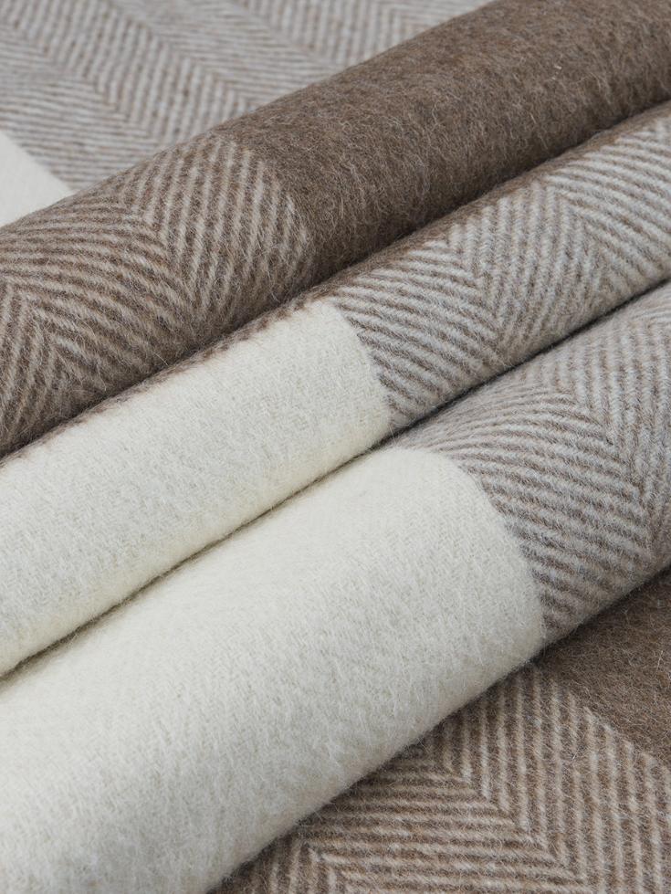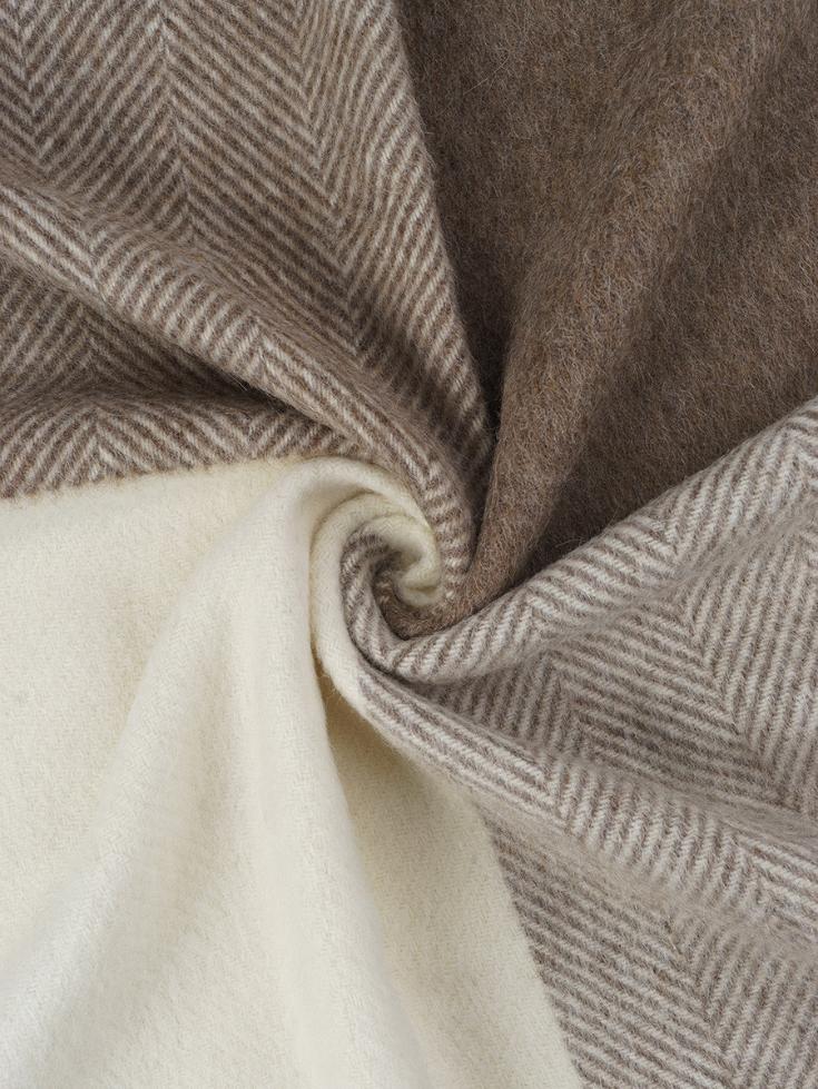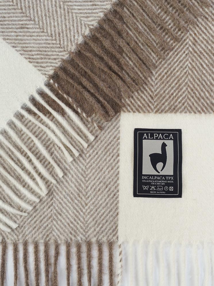 Плед INCALPACA (Перу) серии PP выполнен из смеси шерсти альпаки и мериноса. Шерсть альпаки обладает большой способностью сохранять тепло, что достигается за счёт наличия в составе её волокон микроскопических пузырьков. Присутствие в составе шерсти мериноса животного воска-ланолина оказывает оздоравливающее воздействие на людей, страдающих заболеваниями опорно-двигательного аппарата.