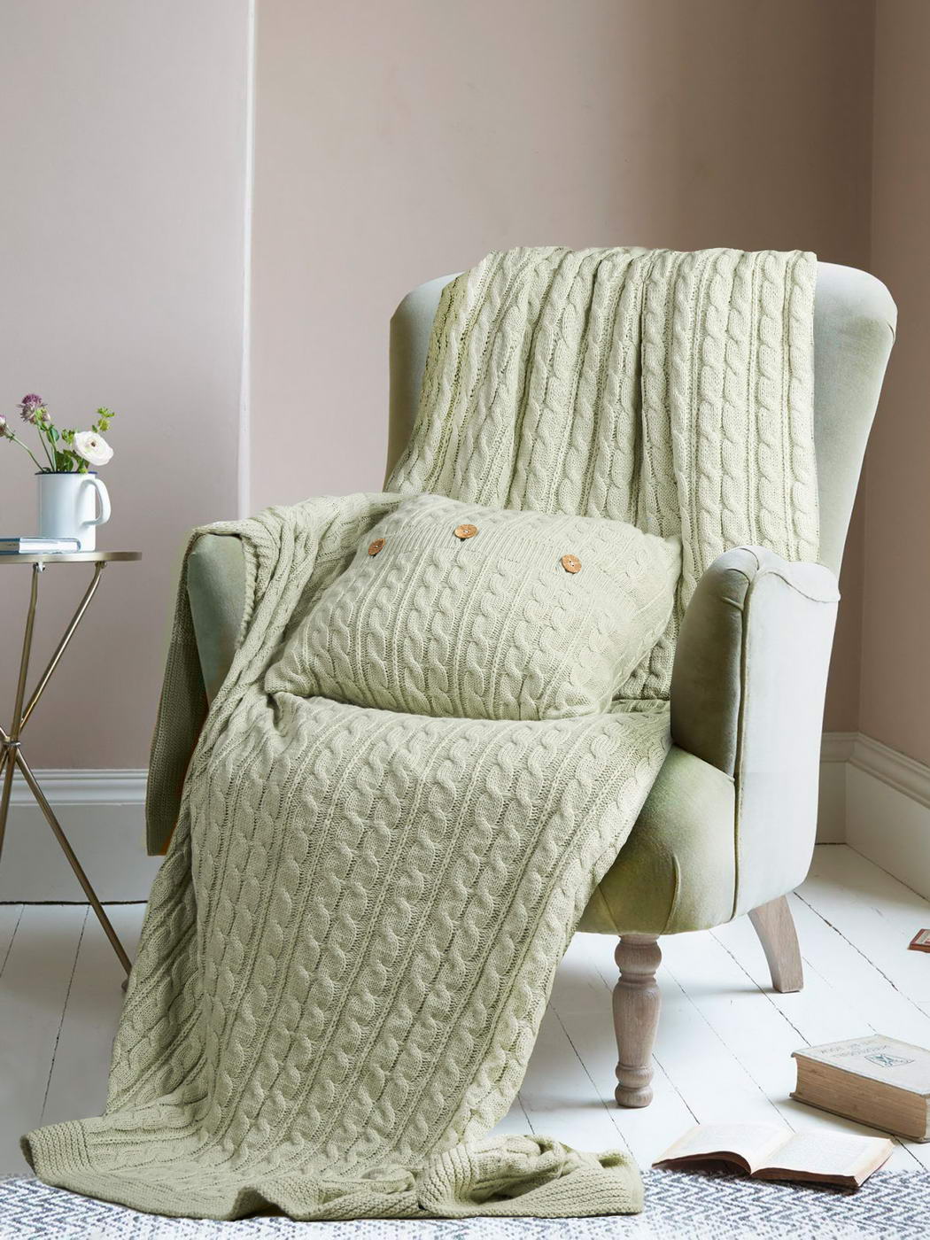 Вязаный плед коллекции "Джованни" торговой марки "Sofi de Marco" выполнен из кроссбредной овечьей шерсти, обладающей высокой способностью сохранять тепло. Кроссбредную шерсть обычно получают путём стрижки овец длинношерстной породы. Овечья шерсть содержит в своём составе природный воск-ланолин, благотворно влияющий на мышечно-связочный аппарат и оказывающий успокаивающее воздействие на нервную систему. Для улучшения тактильных свойств в шерстяные волокна изделия добавлен хлопок. Дополнительно можно приобрести наволочки 45х45 см той же коллекции.