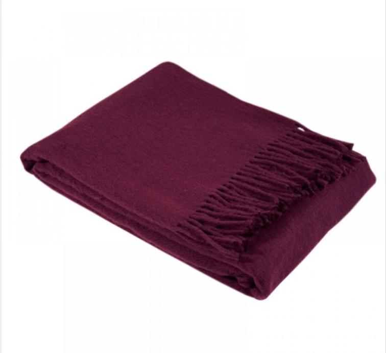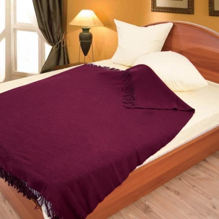 Плед шерсть мериноса Valtery (бордо) 100% шерсть, 170x200