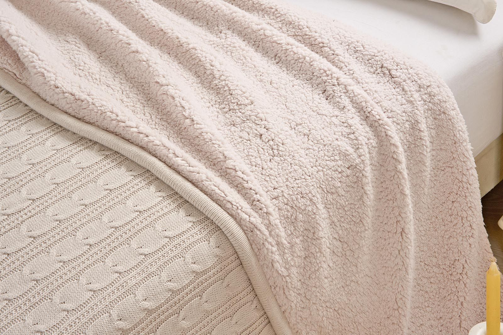 Лицевая сторона пледа коллекции "Вязка" данной серии ТМ «Sofi de Marco» выполнена из 100% акрила. Акриловые пледы - акрил иногда ещё называют "искусственной шерстью" - тёплые, мягкие и пушистые, прекрасно сохраняют форму и цвет, нанесённого на них рисунка. Изнаночная сторона имитирует овечью шерсть - 100% полиэстер.