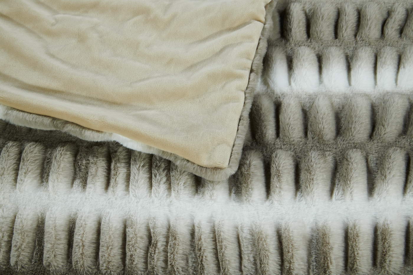 Для производства ворсовых пледов коллекции "Мех" торговой марки "Sofi de Marco" используется искусственный мех. К преимуществам пледа из искусственного меха можно отнести его гипоаллергенность, лёгкость, он не поедается молью и стоит существенно дешевле своего натурального аналога. В качестве ухода рекомендована деликатная стирка при температуре не более 30 °С. Особенностью данной модели является жатая текстура ткани.