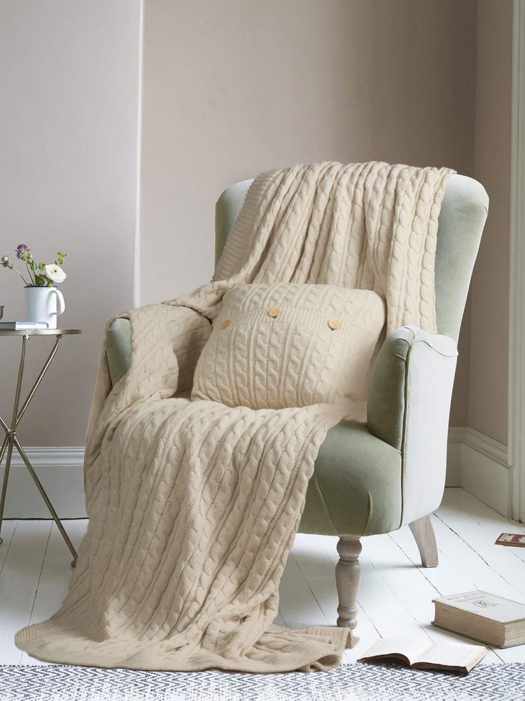 Вязаный плед коллекции "Джованни" торговой марки "Sofi de Marco" выполнен из кроссбредной овечьей шерсти, обладающей высокой способностью сохранять тепло. Кроссбредную шерсть обычно получают путём стрижки овец длинношерстной породы. Овечья шерсть содержит в своём составе природный воск-ланолин, благотворно влияющий на мышечно-связочный аппарат и оказывающий успокаивающее воздействие на нервную систему. Для улучшения тактильных свойств в шерстяные волокна изделия добавлен хлопок. Дополнительно можно приобрести наволочки 45х45 см той же коллекции.