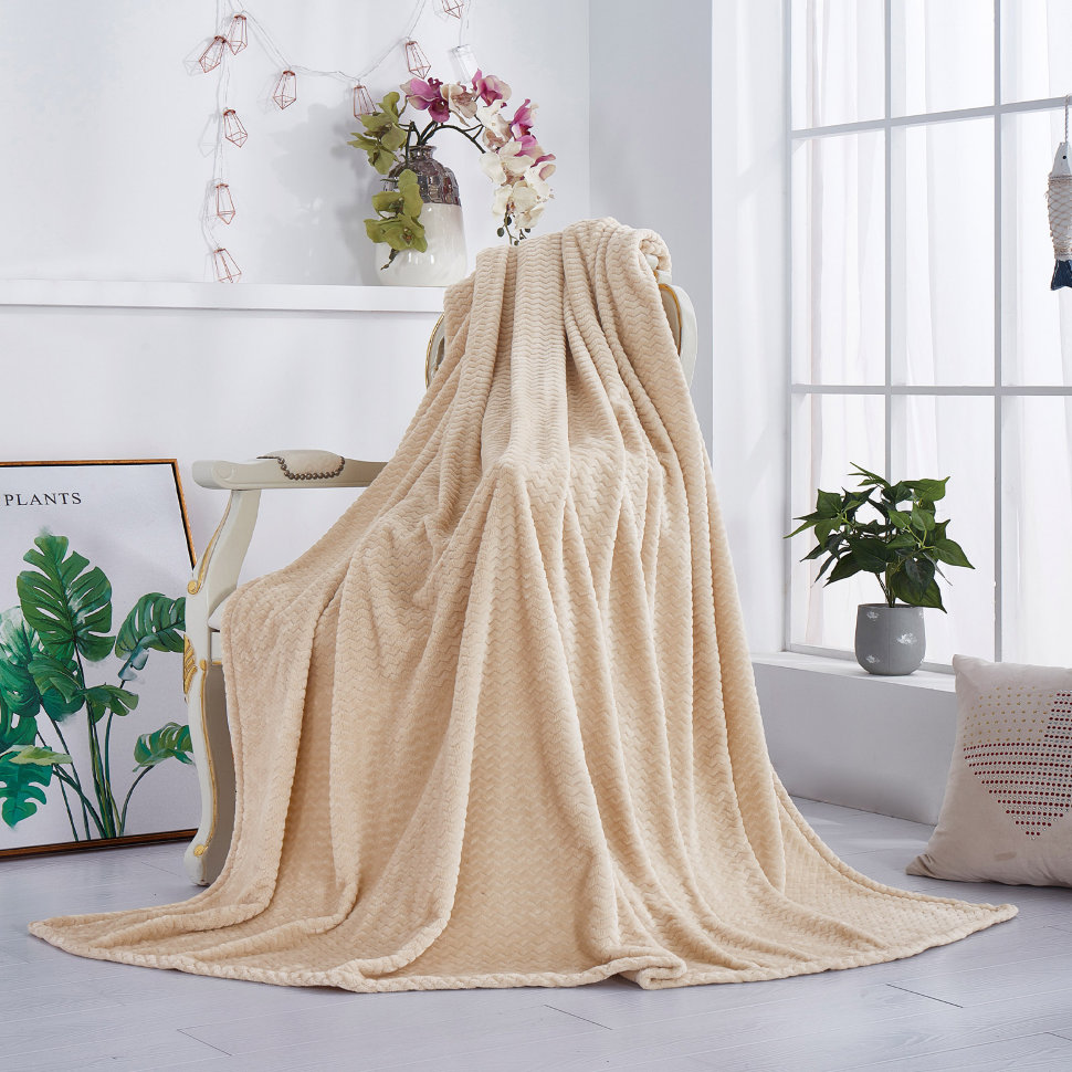 Жаккардовый плед "KARTEKS" Зигзаг-01 кремовый, 180х200