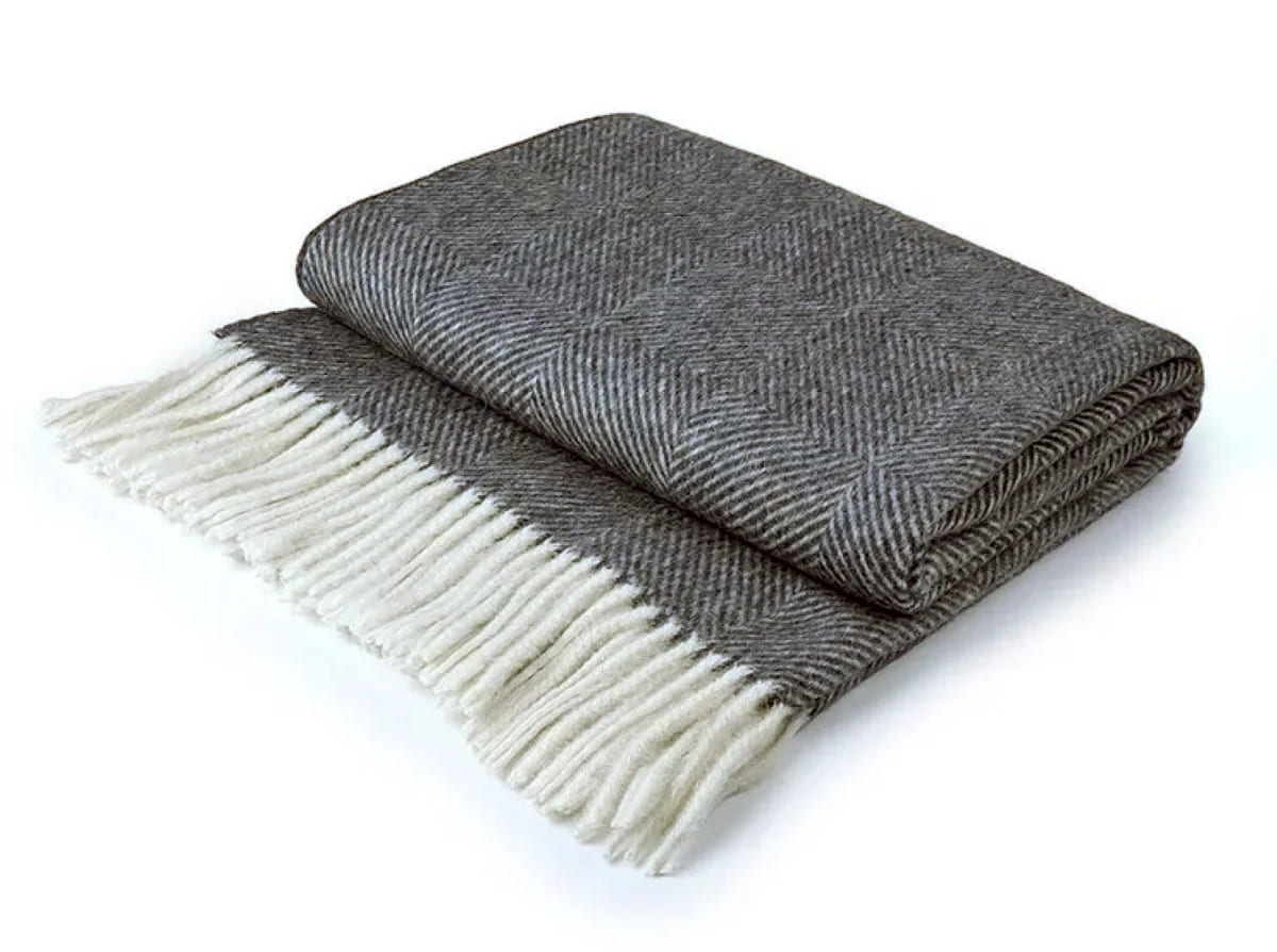 Плед INCALPACA (Перу) серии PP выполнен из смеси шерсти альпаки и мериноса. Шерсть альпаки обладает большой способностью сохранять тепло, что достигается за счёт наличия в составе её волокон микроскопических пузырьков. Присутствие в составе шерсти мериноса животного воска-ланолина оказывает оздоравливающее воздействие на людей, страдающих заболеваниями опорно-двигательного аппарата.