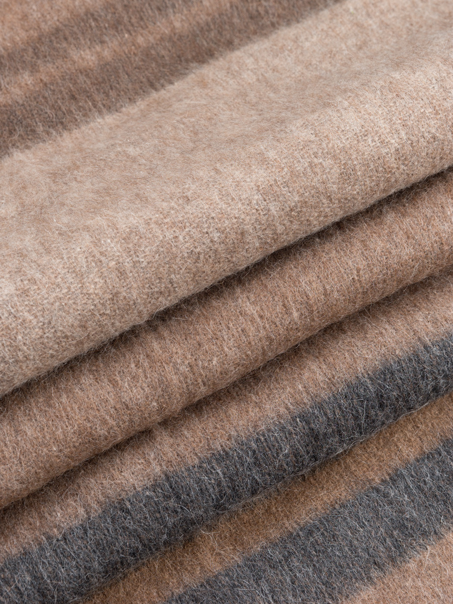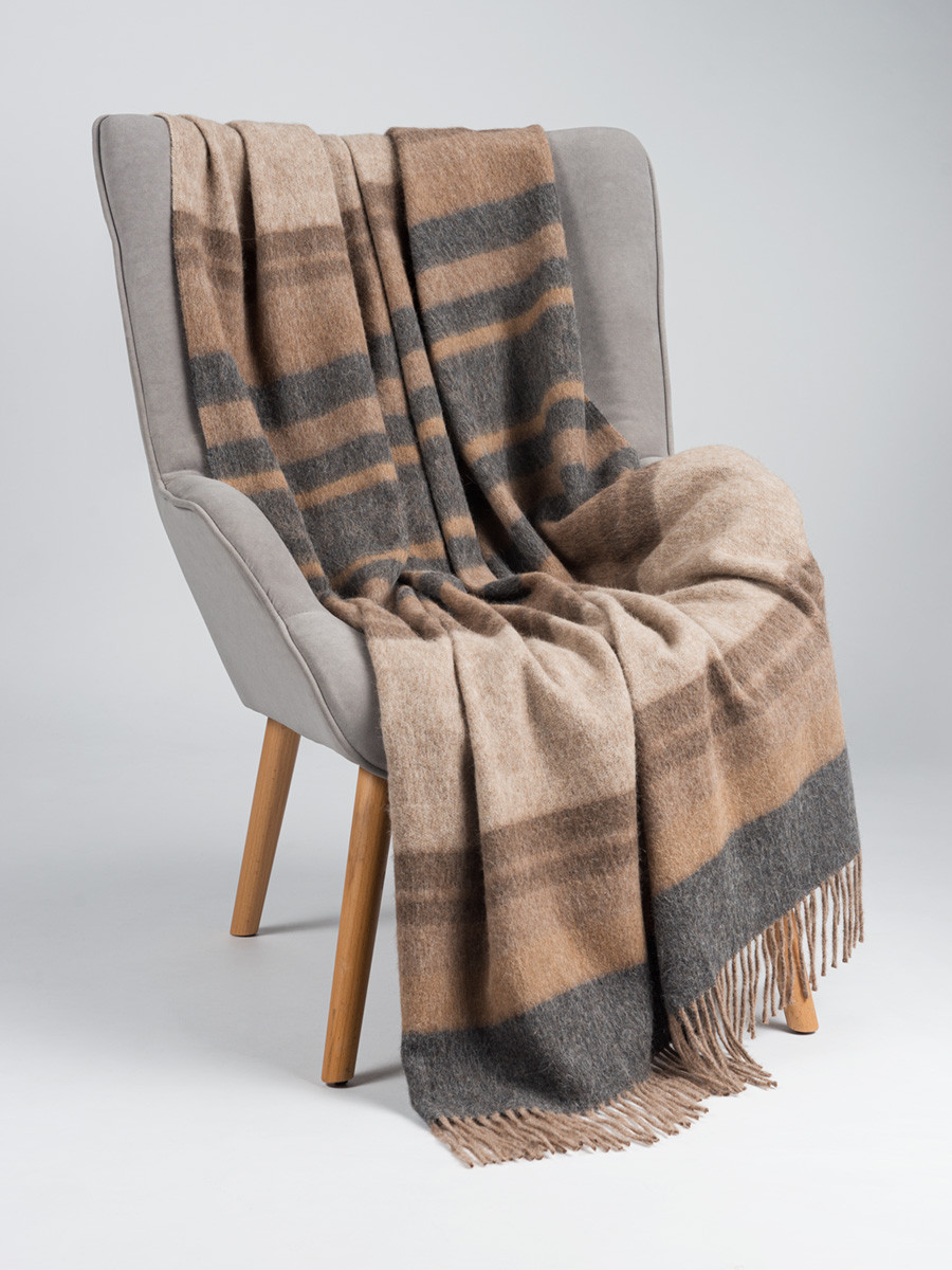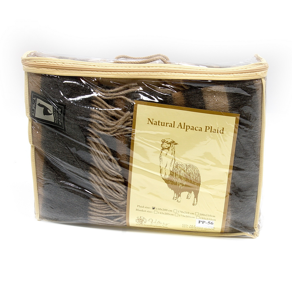 Плед INCALPACA (Перу) серии PP выполнен из смеси шерсти альпаки и мериноса. Шерсть альпаки обладает большой способностью сохранять тепло, что достигается за счёт наличия в составе её волокон микроскопических пузырьков. Присутствие в составе шерсти мериноса животного воска-ланолина оказывает оздоравливающее воздействие на людей, страдающих заболеваниями опорно-двигательного аппарата.