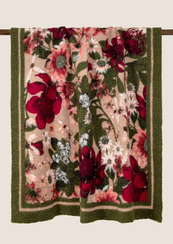 Плед шерстяной Frati "GREENERY" (бежевый с зеленым), 150x190