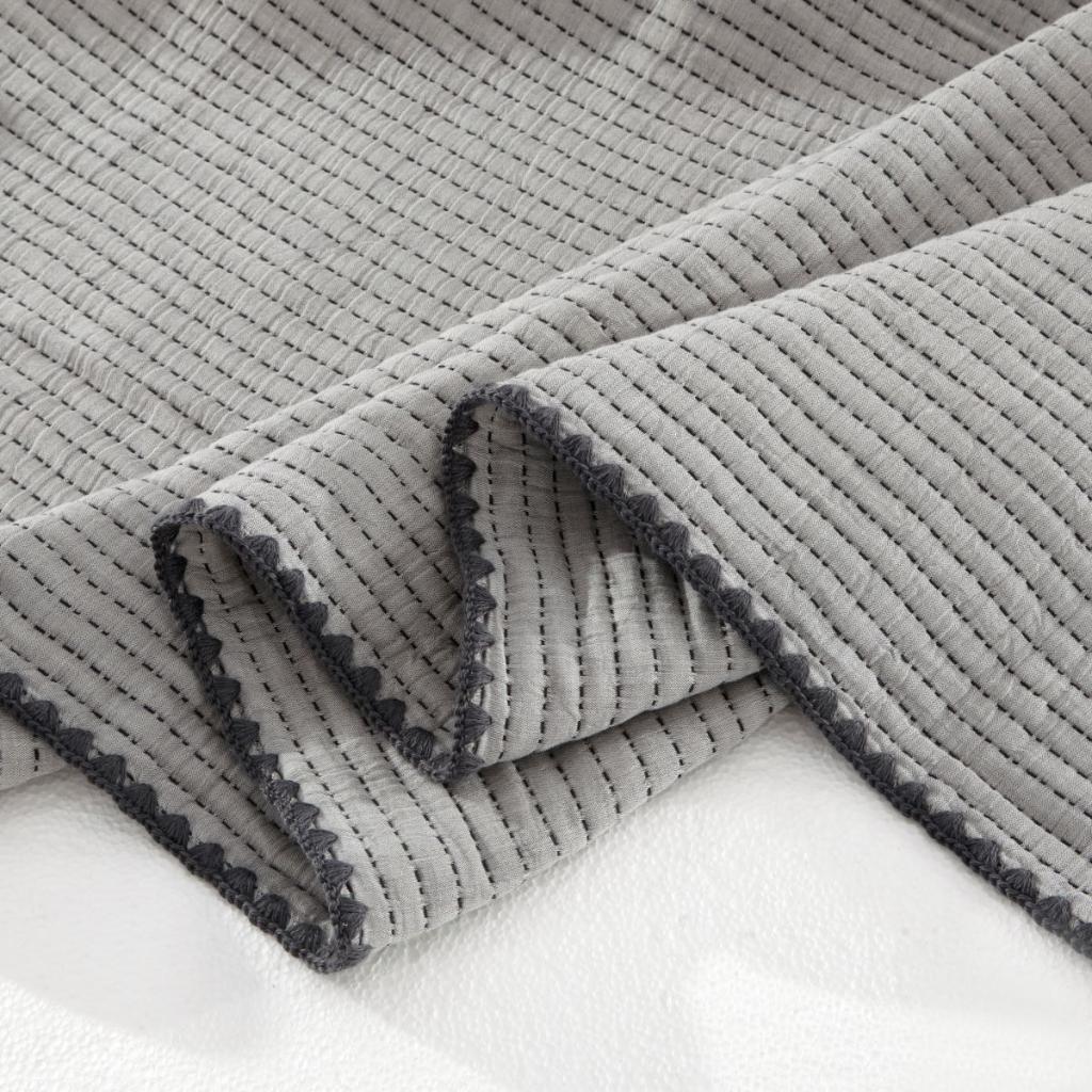 Стёганые пледы торговой марки "Asabella" выполнены из гладкого, хлопкового муслина. Тонкий слой наполнителя - 100% искусственный шёлк. Это позволяет использовать изделия в летний период в качестве лёгкого одеяла или покрывала. Пледы отличаются мягкостью, гигроскопичностью, воздухопроницаемостью и гипоаллергенностью.