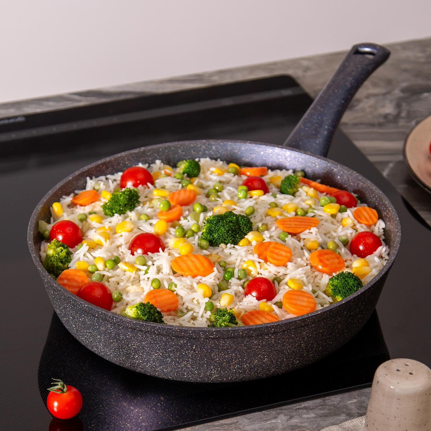 Глубокая сковорода GRANITE выполнена из кованого алюминия.