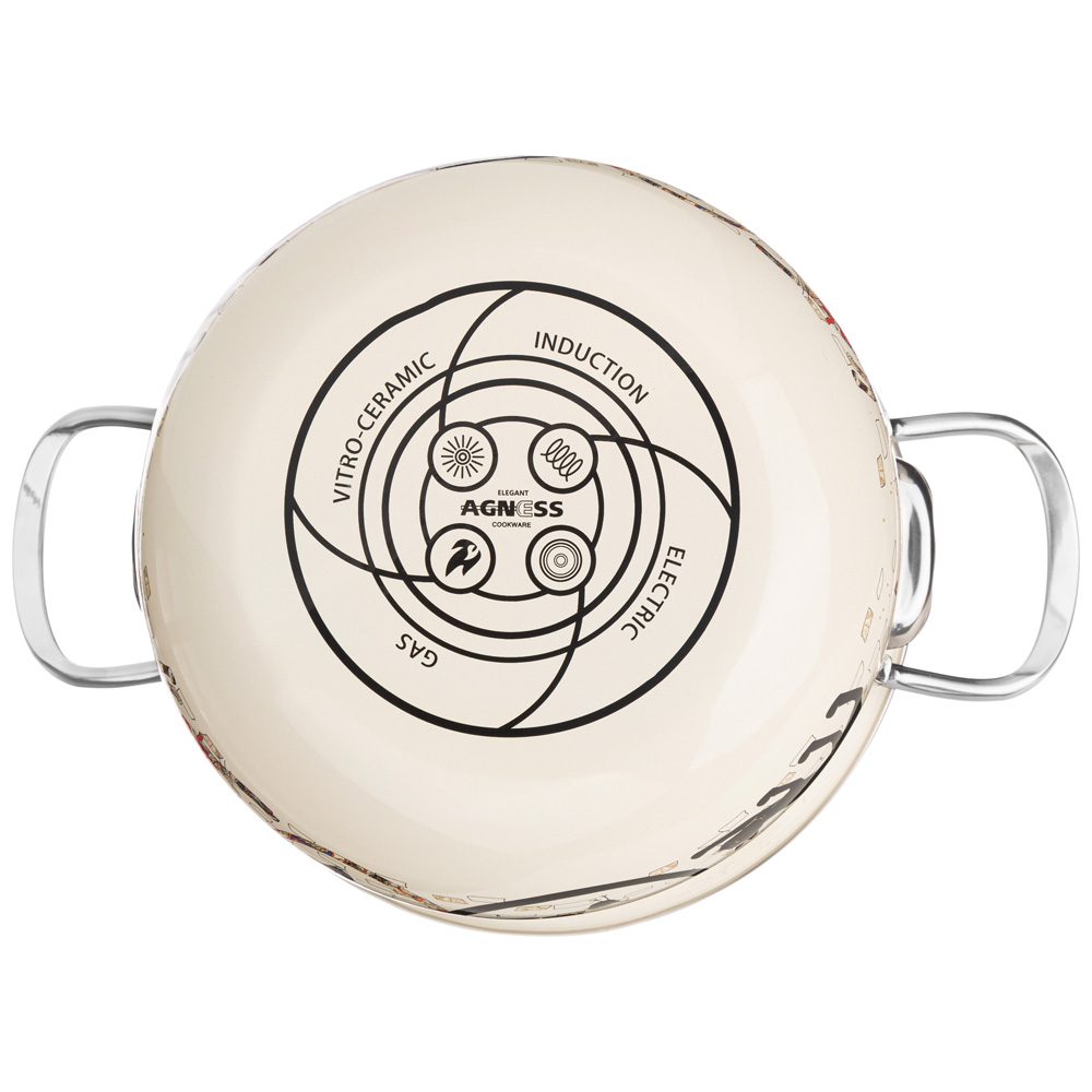 Кастрюли с крышкой данной серии ТМ "Agness" изготовлены из стали с эмалированным покрытием и подходят для газовой, электрической и индукционной плиты.