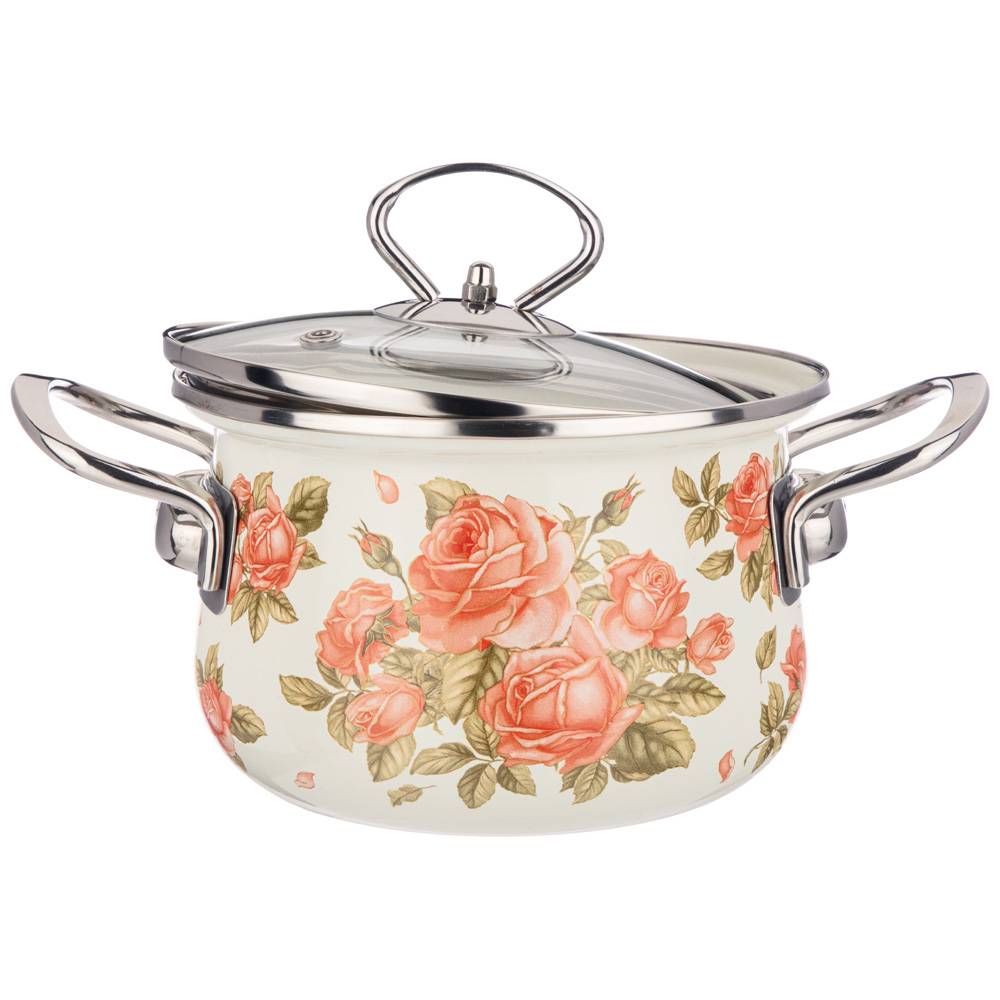 Кастрюля эмалированная с крышкой ""КОРЕЙСКАЯ РОЗА", 1,5 л